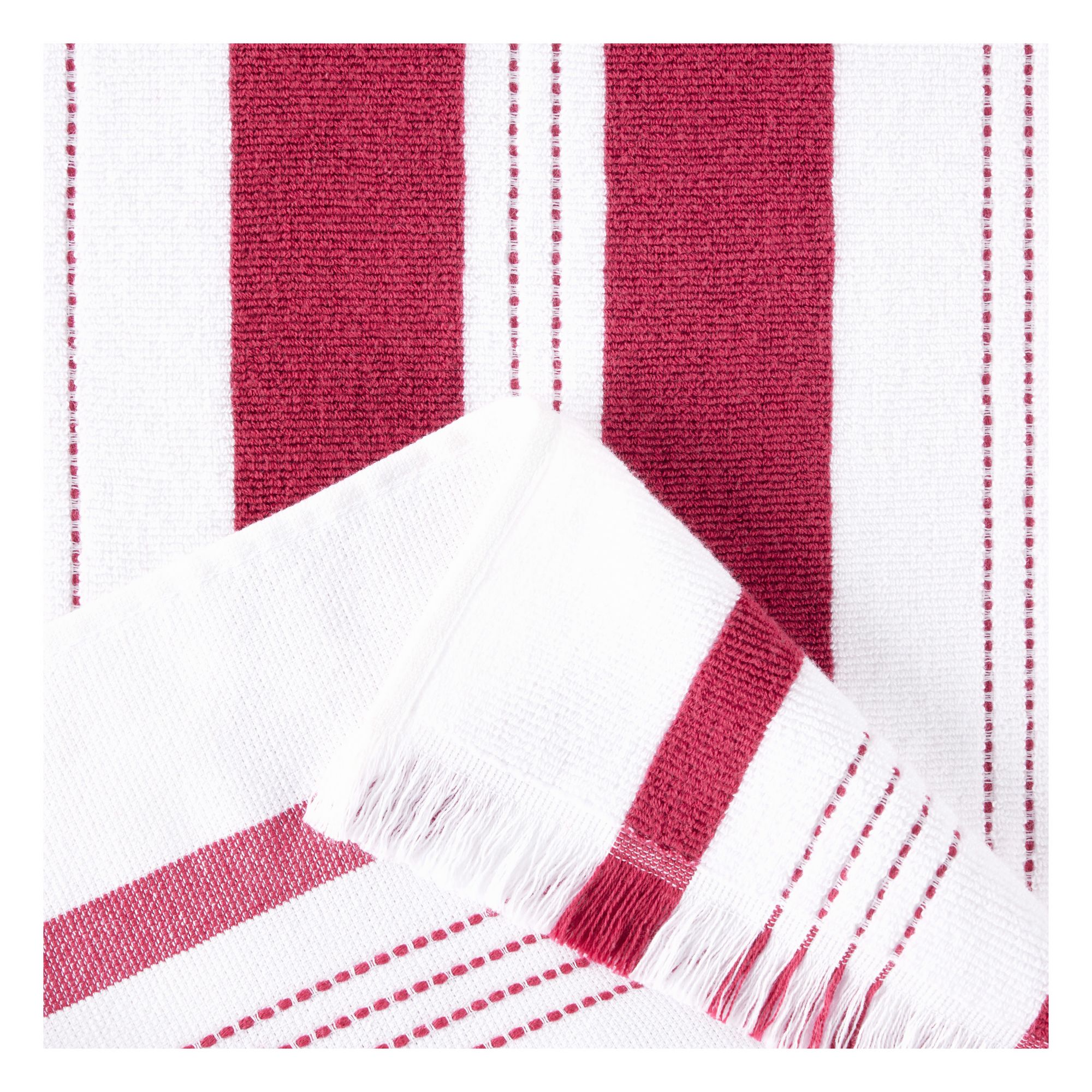 Two dual-purpose kitchen towels with fringe for lint-free dish drying