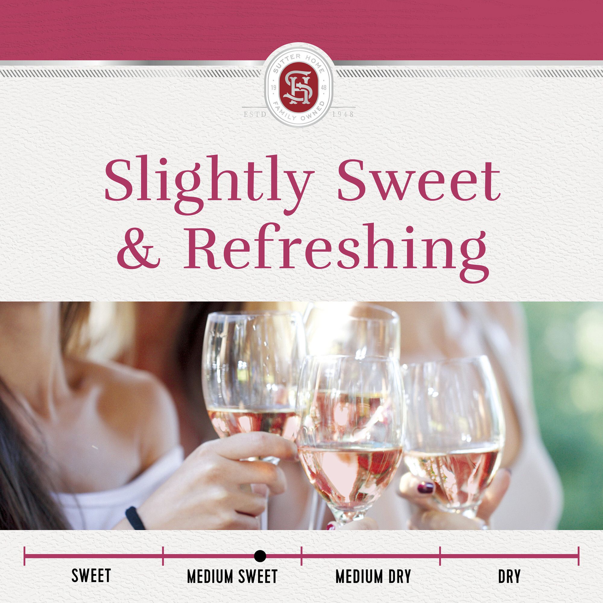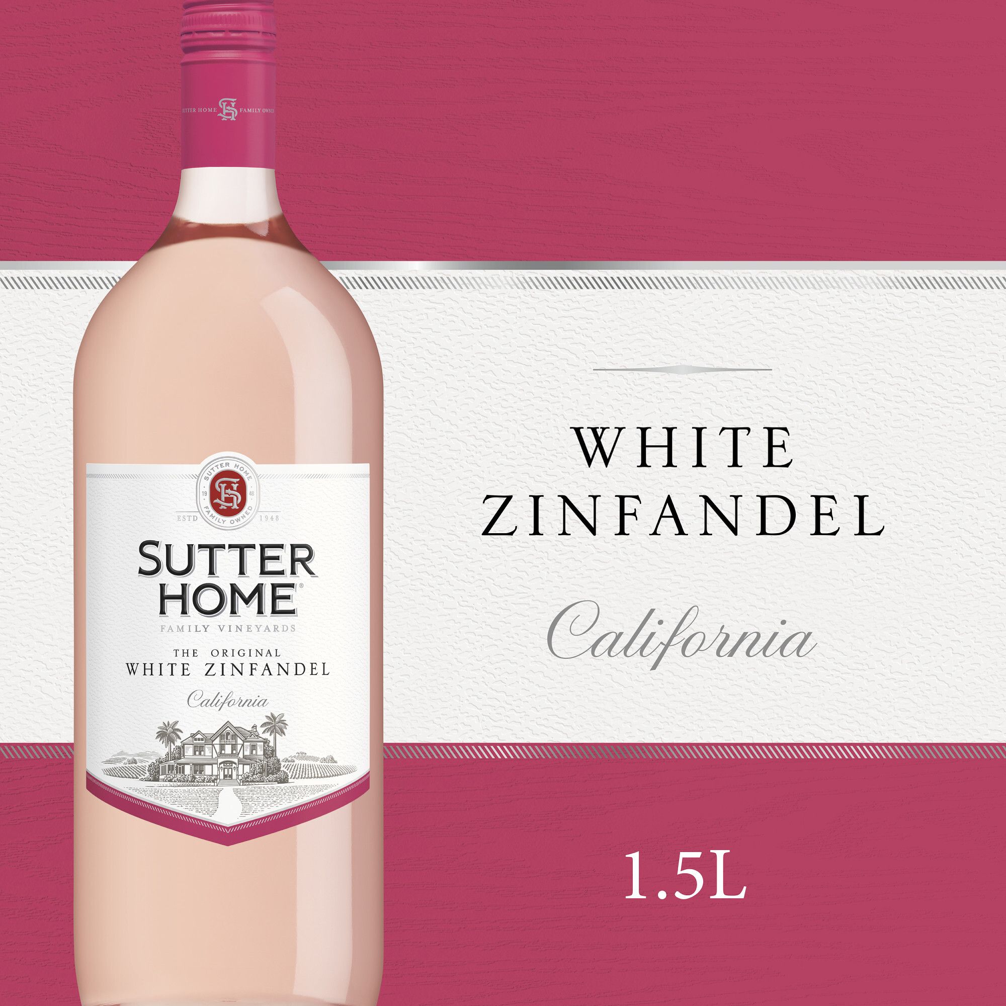Sutter Home White Zinfandel Wine looks as good as it tastes with its beautiful pale pink color. Delicate aromas of sun-ripened berries lead to sweet, creamy strawberry and melon flavors that mingle with a hint of vanilla on the palate. The crisp, refreshing finish balances out this lightly sweet wine, making it the perfect partner for a wide variety of foods. Sutter Home Wine has earned Silver from 2023 Toast of the Coast Wine Competition and 93 points - Silver from 2022 California State Fair. As you gather around the table this holiday season, enjoy Sutter Home wine in your favorite wine glasses with mashed potatoes, chicken, turkey, stuffing and all the pumpkin and apple pies. Or get cozy around the fireplace and warm up while enjoying a glass of wine. Sutter Home wines is the perfect holiday gift. Whether you gift wine as a stocking stuffer, to your neighbor across the street, or serve at your own holiday table. Sutter Home wines are a great addition to holiday wine gift sets! Sutter Home, family owned since 1948, is the brand generations of wine lovers trust to deliver consistent, award-winning quality and value for every wine occasion.