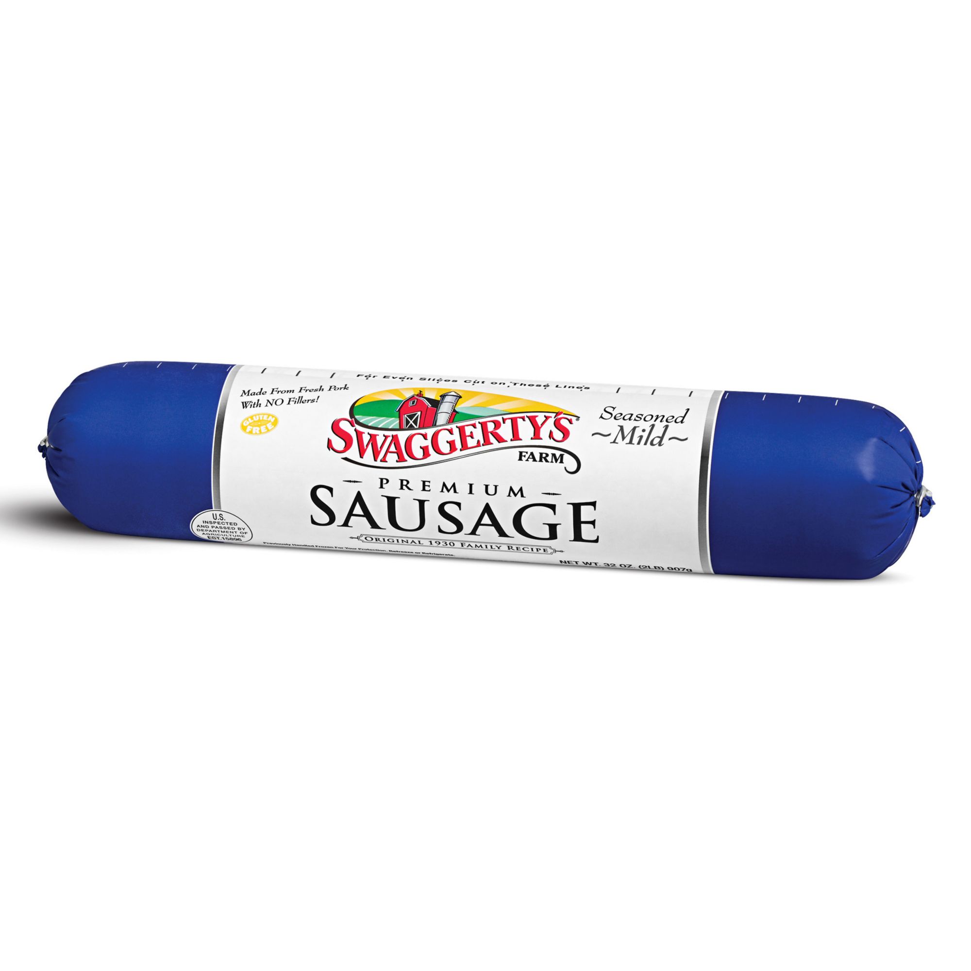 Swaggerty's Farm mild premium pork sausage roll is made fresh daily from hot-boned pork including the ham, shoulders, and bellies seasoned with their original 1930 family recipe.