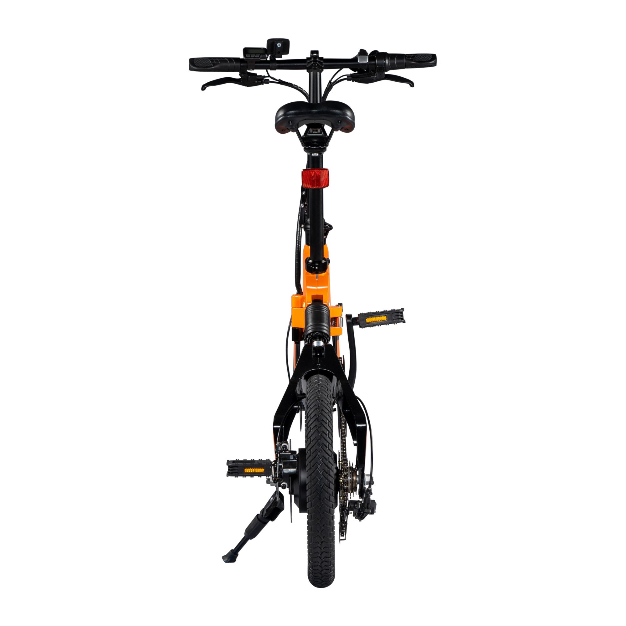 Everything you need for the perfect ride is included right out the box. Ergonomic paddle-shaped grips and adjustable seat for maximum comfort. Bright LED headlight for bike riding in low-light conditions. Electric horn and rear reflectors for a safer journey. An aluminum heat sink regulates the hub motor's temperature and protects it from overheating.