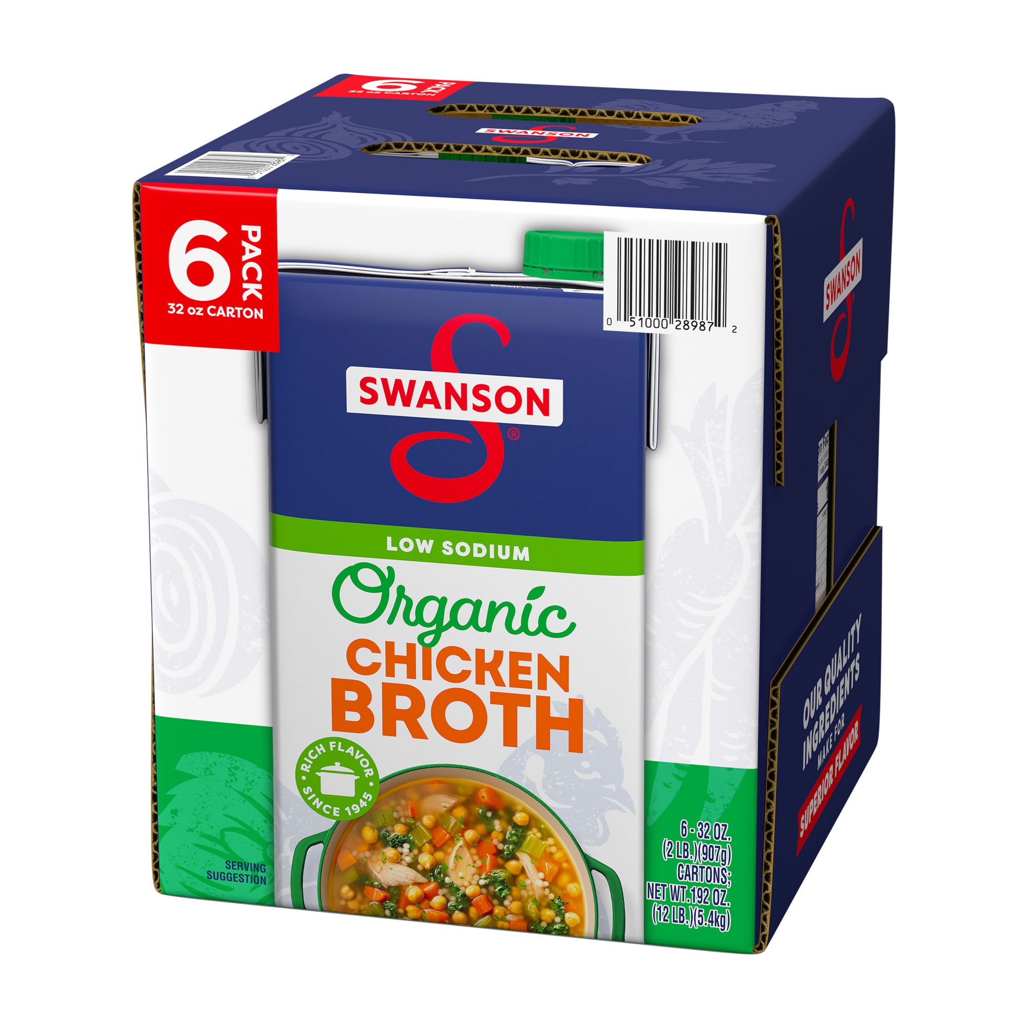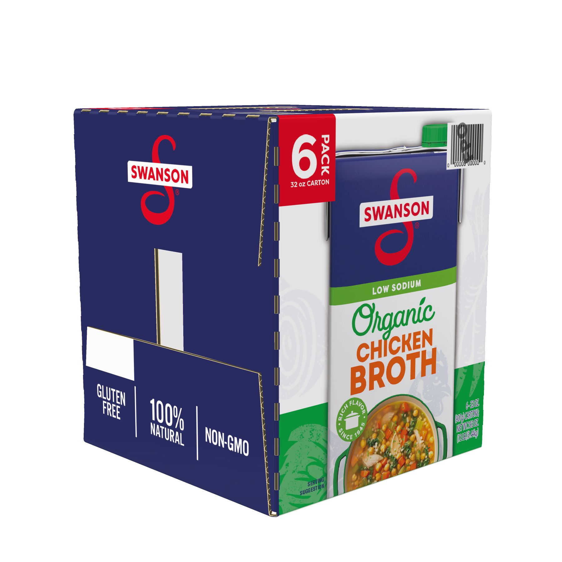 Swanson 100% Natural Low Sodium Organic Chicken Broth, Cartons, 6 pk./32 oz.