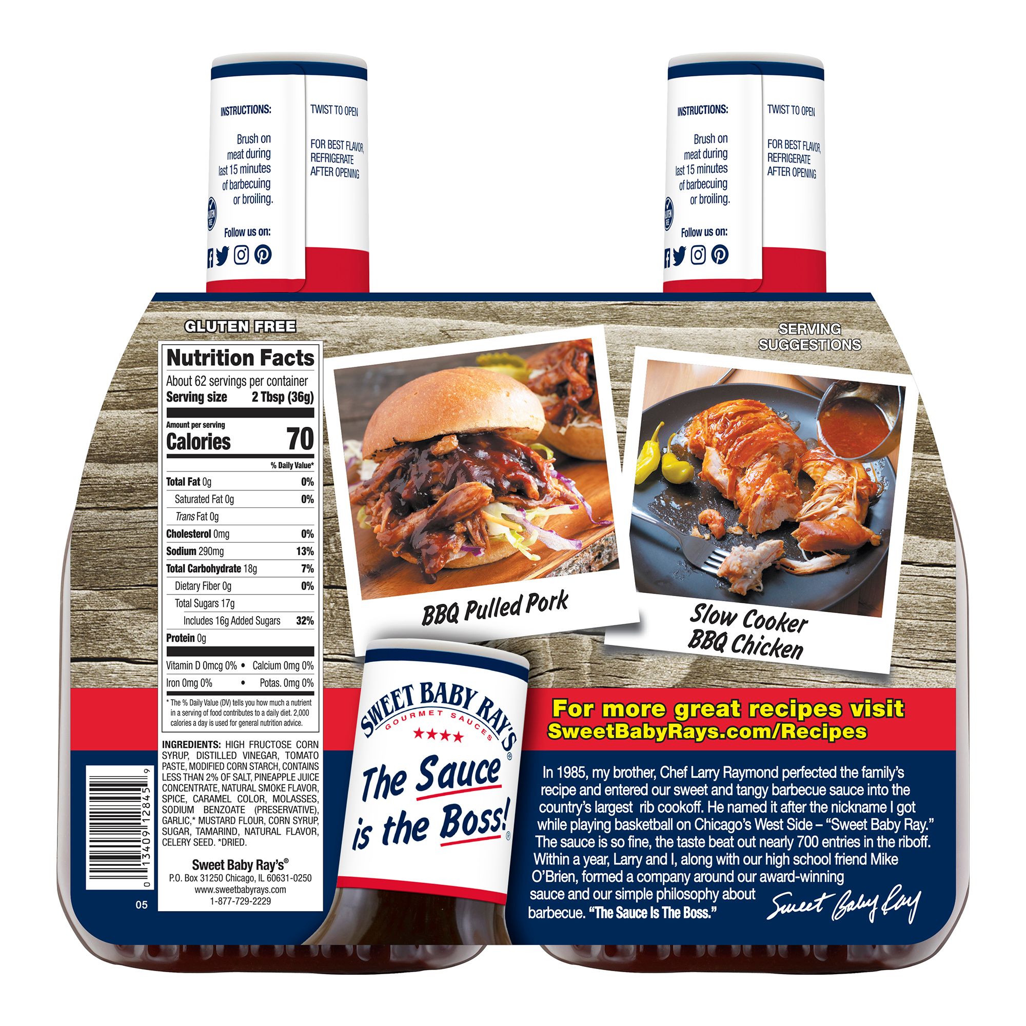 Slather on some Sweet Baby Ray's 40 Oz. Barbecue Sauce, and enjoy tantalizing flavor in all your grilled dishes. It's thick and sweet, yet it offers a nice kick for an immersive flavor experience.