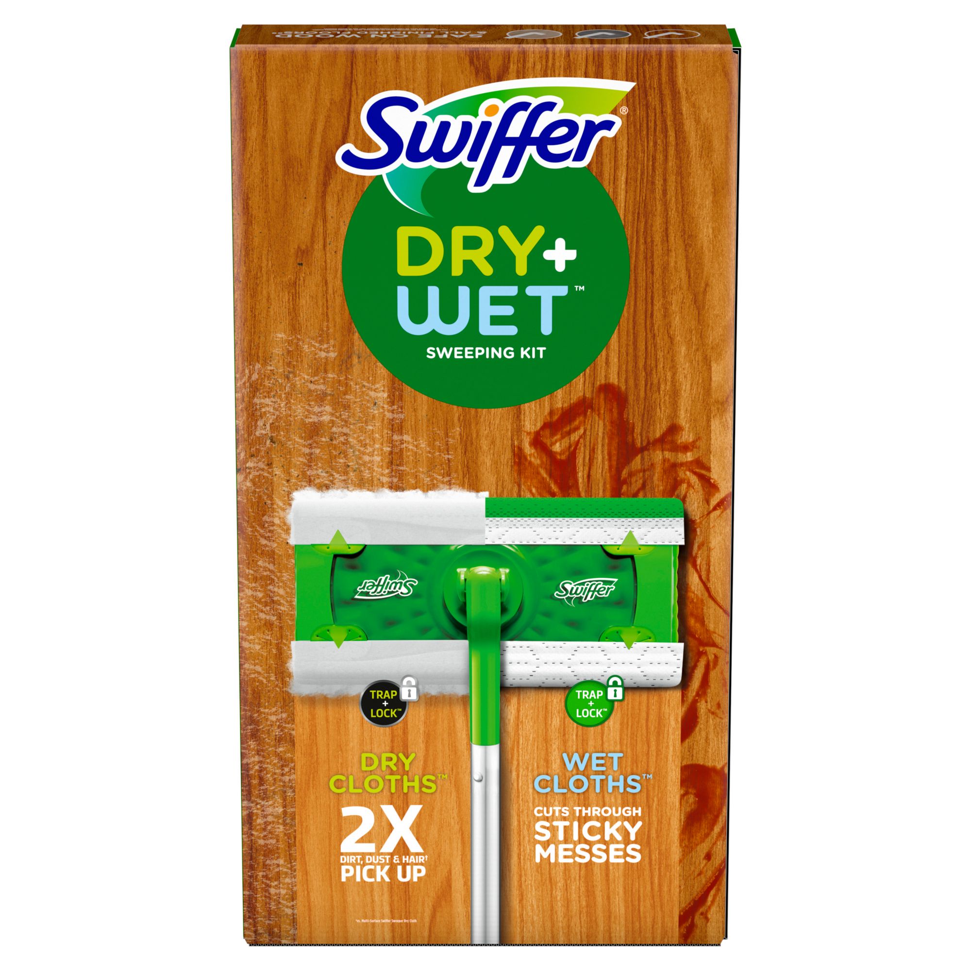 Swiffer Sweeper is a 2-in-1 multi-surface hard surface floor cleaner designed for both sweeping and mopping - no dustpan or bucket required! First, use a Dry Sweeping Cloth. With deep ridges and grooves that conform to the surface of your floor, TRAP AND LOCK dirt, dust and hair. Next, use a Wet Mopping Cloth to dissolve dirt and grime and trap it away, giving you an amazing clean. Enjoy the convenient combination of a broom and mop for a quick and easy clean that gets dirt out of your home once and for all. Refill cloths available.