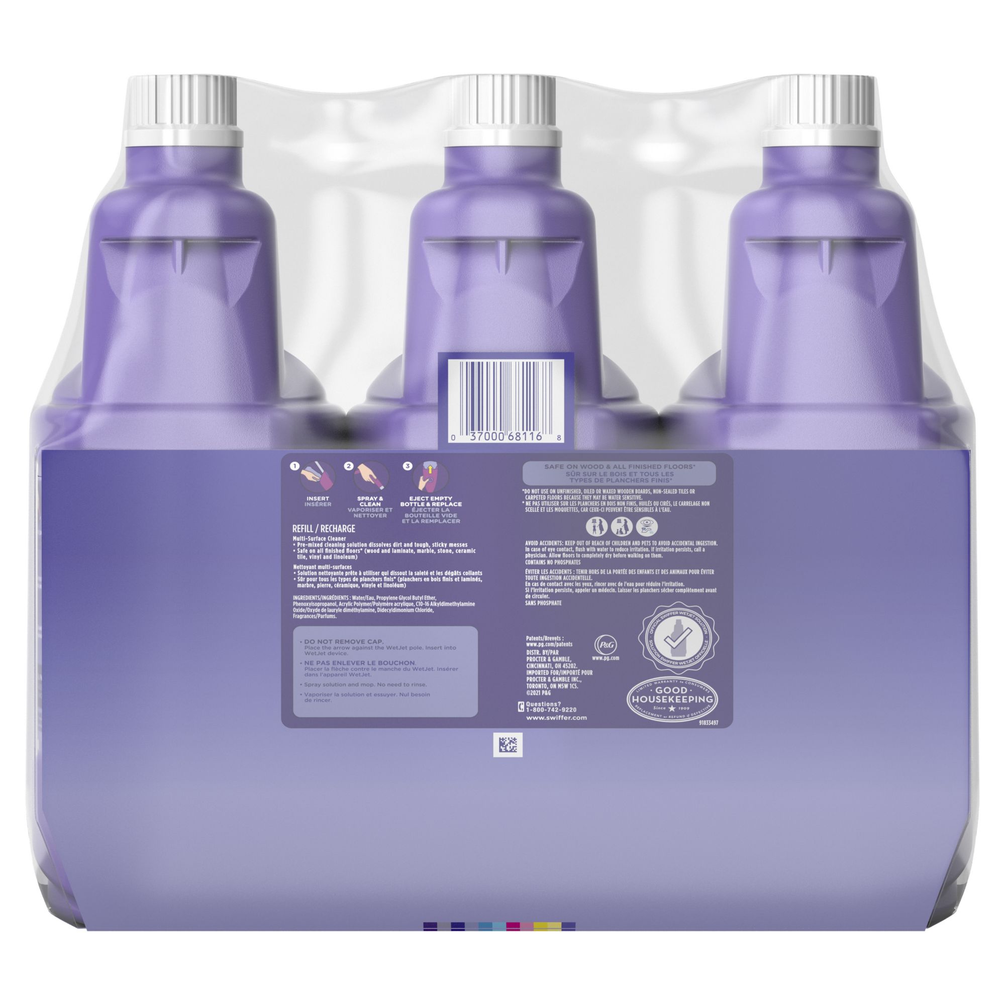 Swiffer WetJet Multi-purpose Floor Cleaner Solution, Febreze Lavender Vanilla and Comfort Scent, 3 ct./1.25L