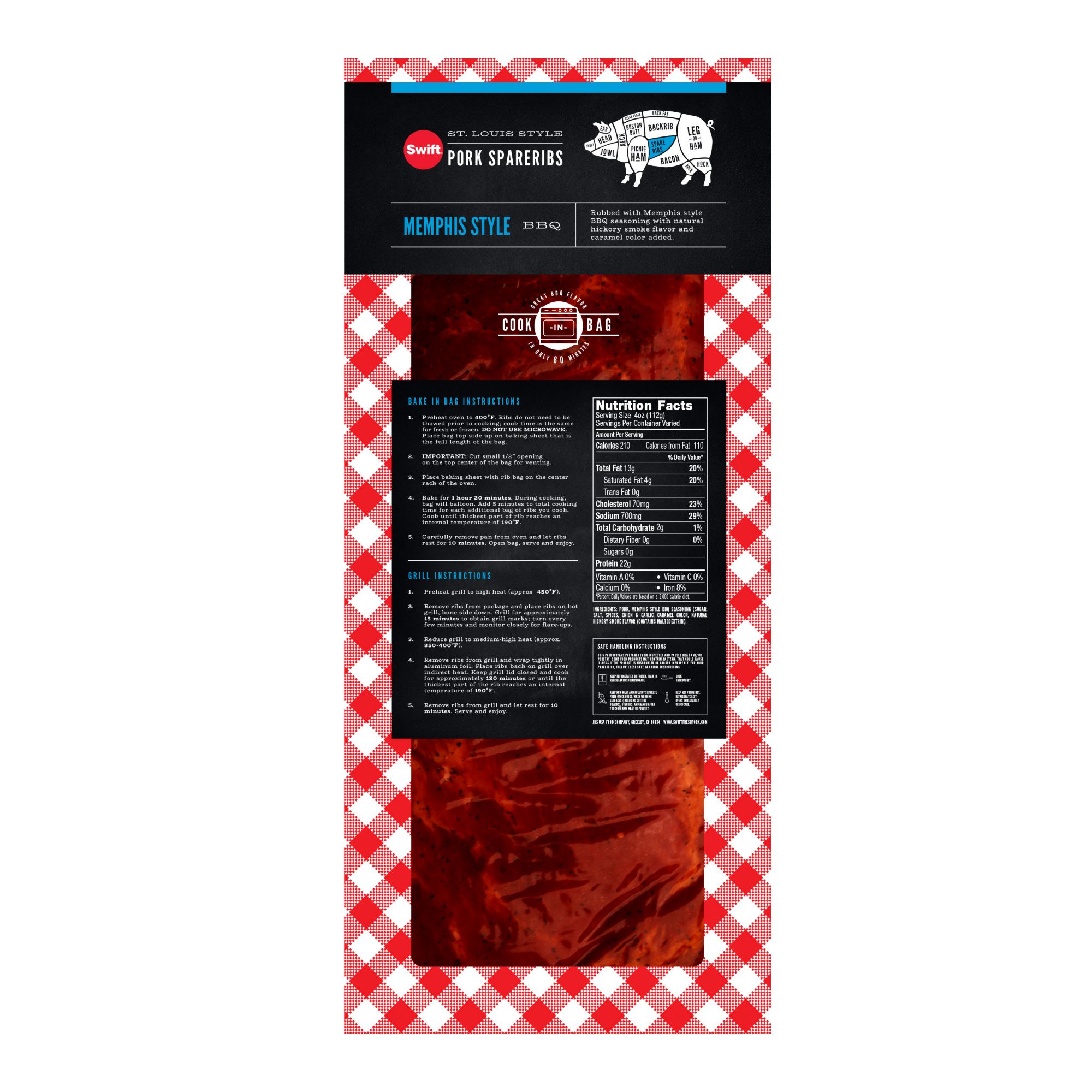 Swift Cook-In-Bag St. Louis pork spareribs are seasoned and ready to cook. You don't have to choose between easy and tasty. With less sweetness and more pepper, Swift Cook-In-Bag Memphis BBQ Style Pork Spareribs are the perfect way to delight your family without spending hours in the kitchen.