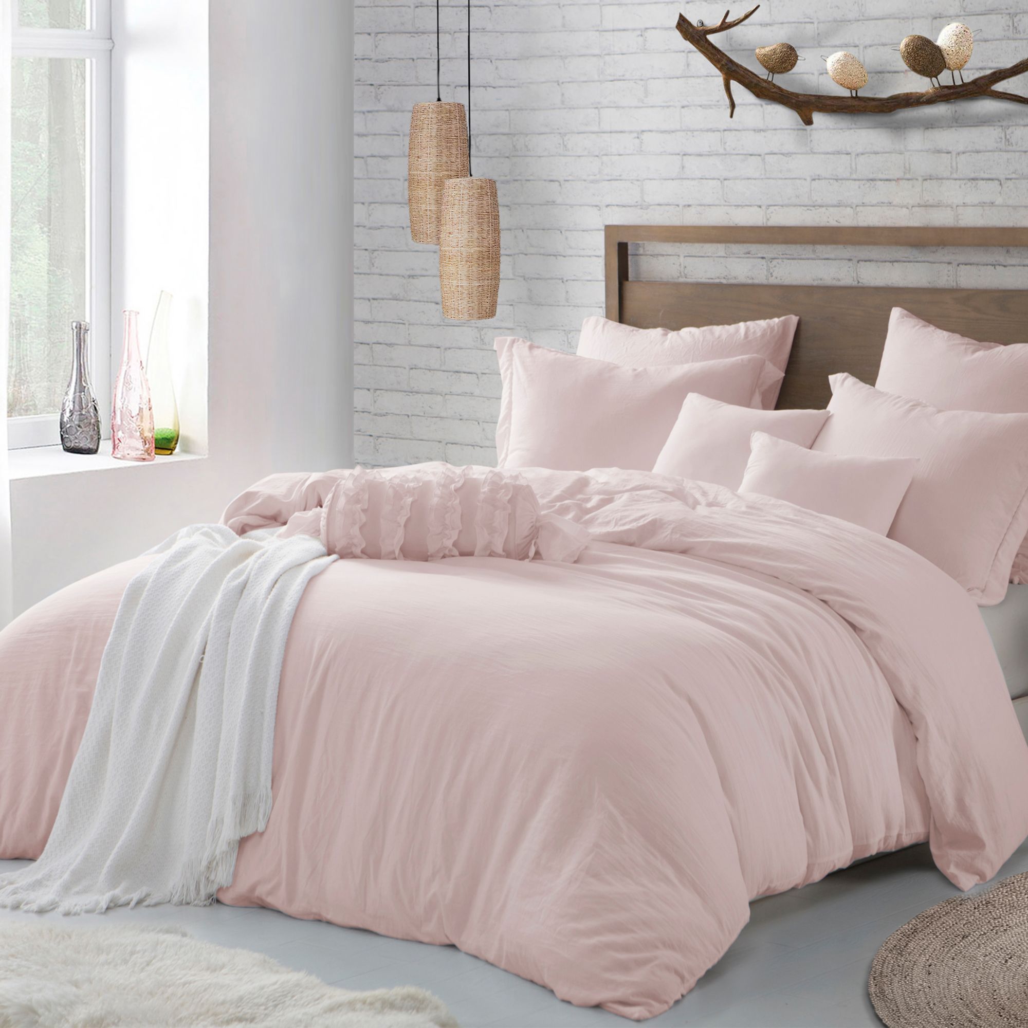 Swift Home Lush Crinkle-Washed Rose Blush Duvet Cover Set
