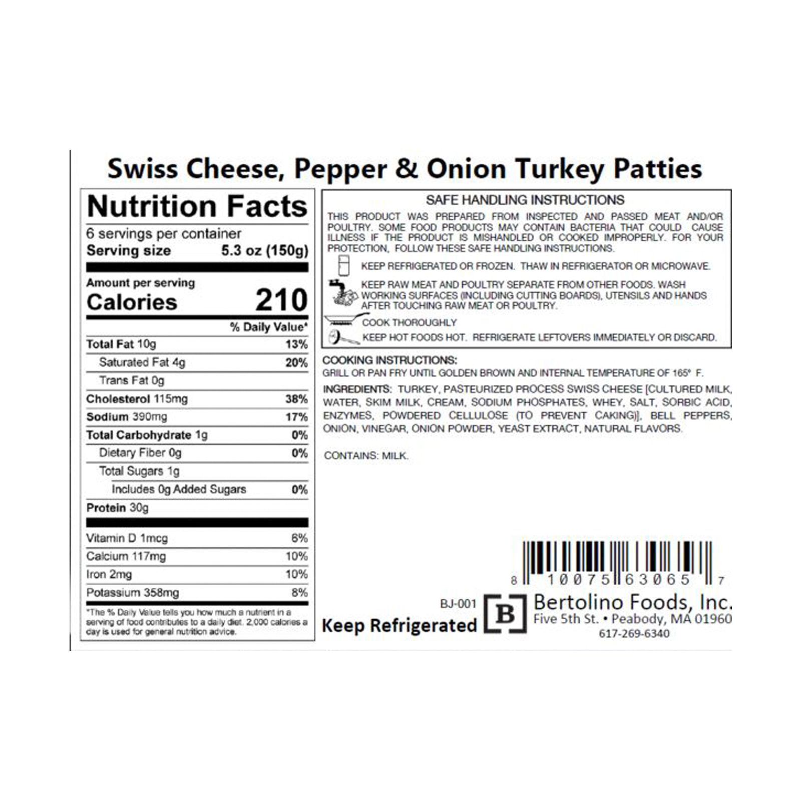 Swiss Cheese, Pepper & Onion Turkey Burger Patties, 2 lbs.
