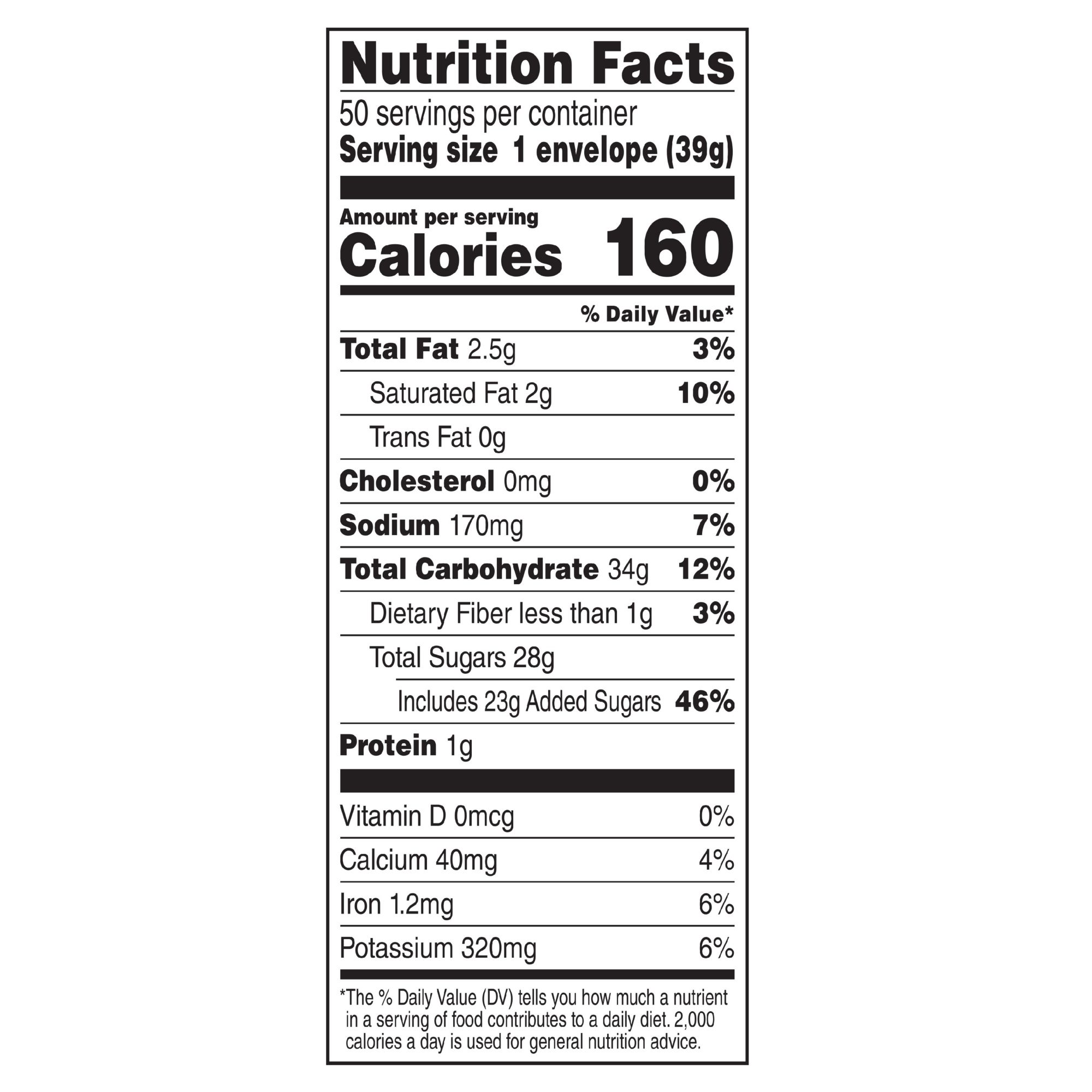 No artificial sweeteners, preservatives, flavors or colors Hot cocoa mix made with real cocoa Made with real milk for a rich flavor Includes 50-count of 1.38-oz. milk chocolate flavored hot cocoa mix envelopes