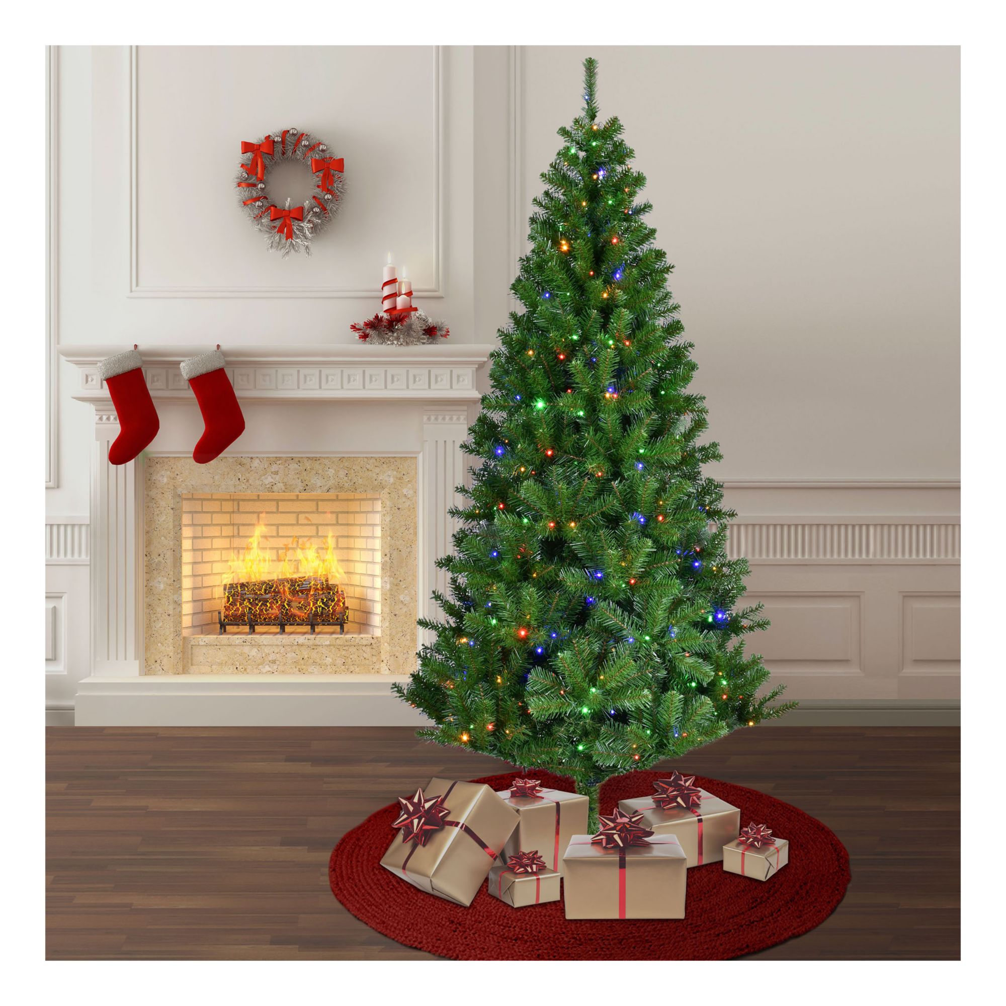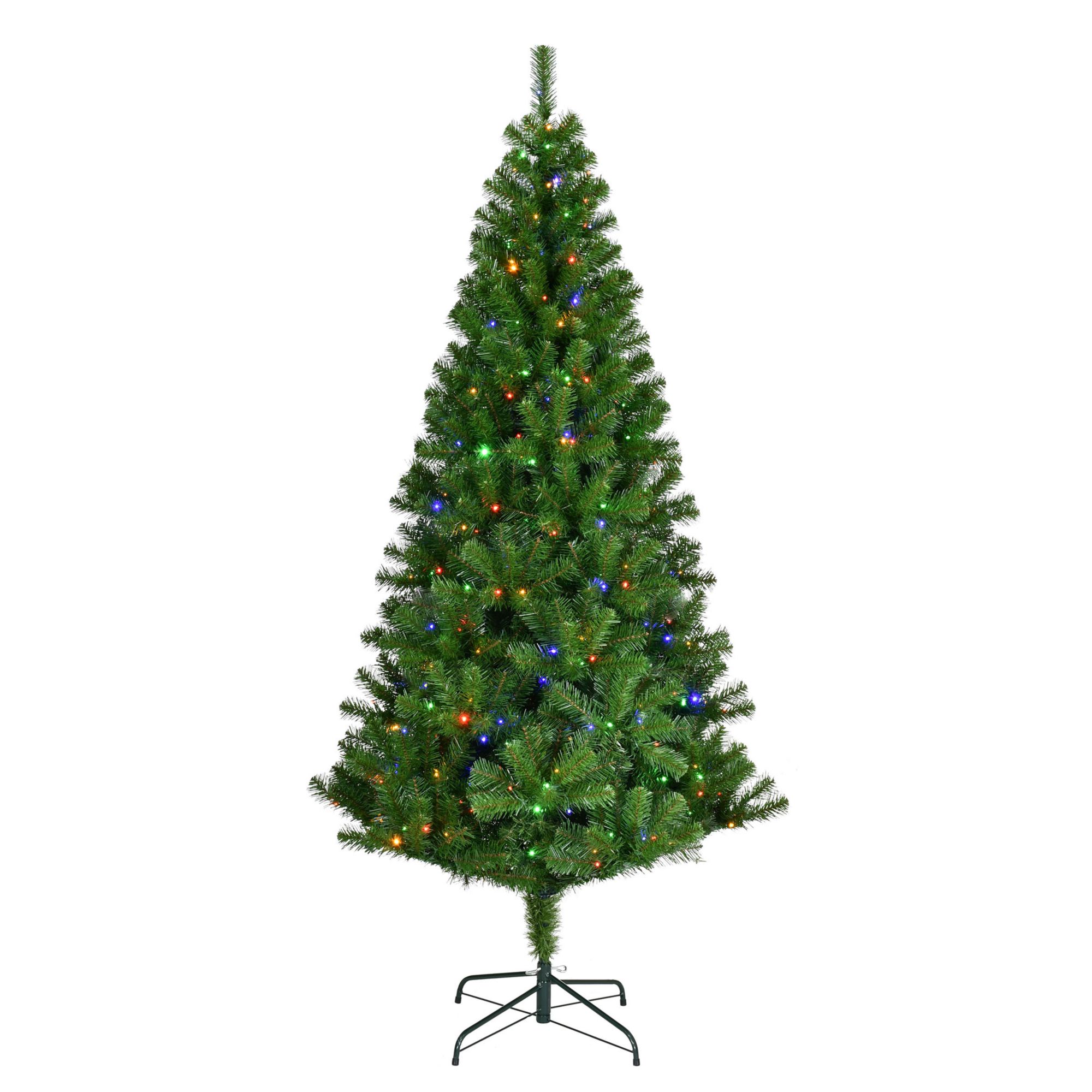 The Sylvania LED 7’ Black Friday color-changing pre-lit tree will stand out during the holidays. This eye-catching artificial Christmas tree features 1,000 branch tips and 350 hassle-free pre-strung three-function warm white/multi-color(R/G/B/Y) LED microdot lights. The tree’s pre-lit innovative LED lights allow you to create and control three different lighting functions. The tree includes a foot pedal for easy operation and a metal sturdy tree stand. The tree comes in three sections for easy setup and storage. Create extraordinary holiday moments with this Sylvania artificial Christmas tree.