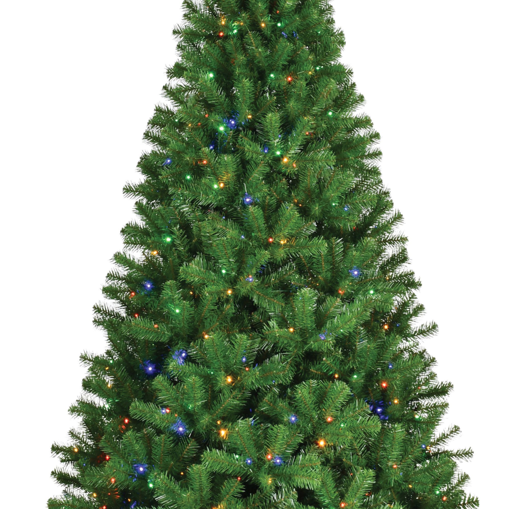 The Sylvania LED 9’ Black Friday color-changing pre-lit tree will stand out during the holidays. This eye-catching artificial Christmas tree features 1,900 branch tips and 550 hassle-free pre-strung three-function warm white/multi-color(R/G/B/Y) LED microdot lights. The tree's pre-lit innovative LED lights allow you to create and control three different lighting functions. The tree includes a foot pedal for easy operation and a metal sturdy tree stand. The tree comes in four sections for easy setup and storage. Create extraordinary holiday moments with this Sylvania artificial Christmas tree.