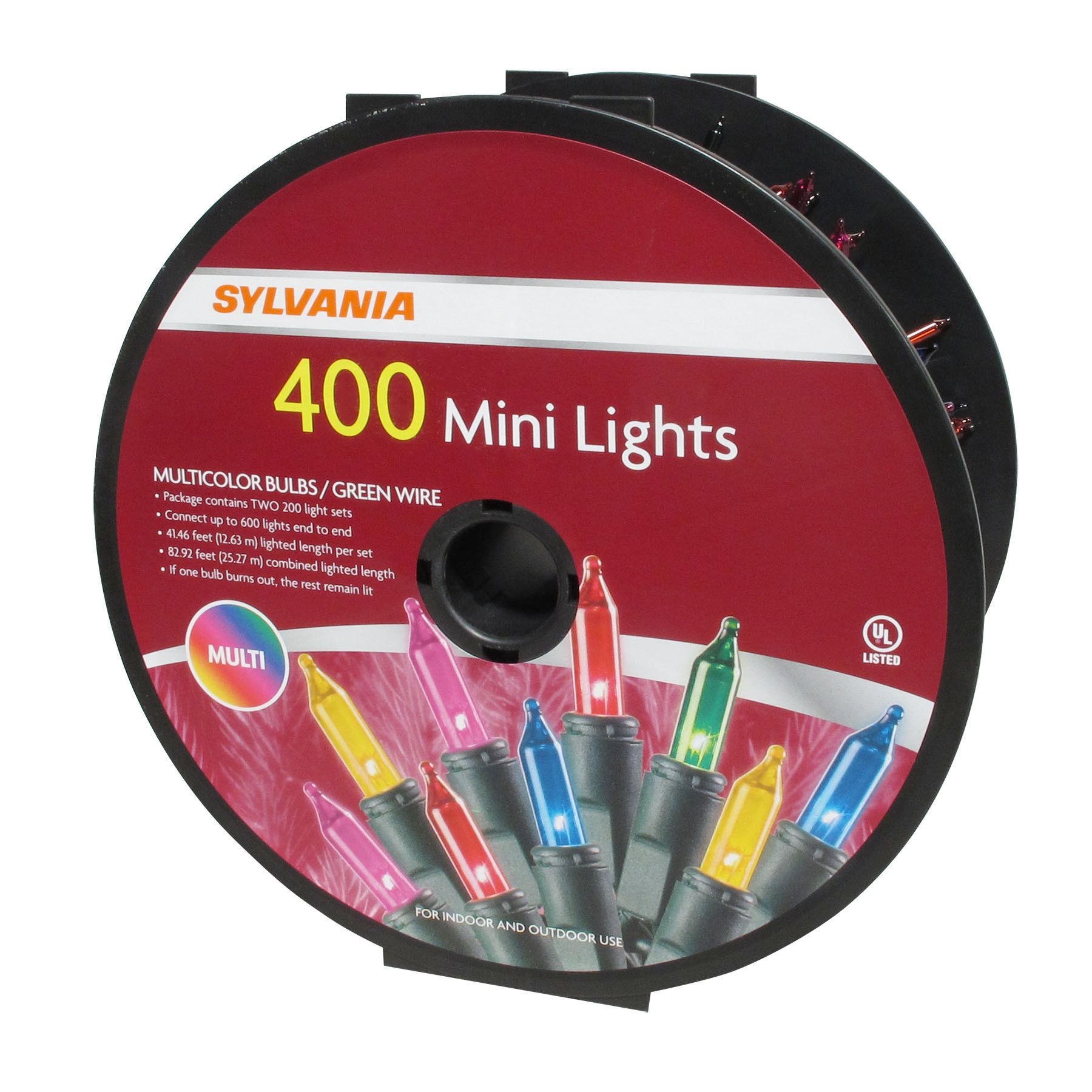 Illuminate your home this holiday season with multicolor mini lights from Sylvania. This pair of 200-count mini light sets has premium lighting to ensure the remaining lights will stay lit even if a bulb becomes loose, burned out, broken or missing. Connect up to 3 sets end to end for an impressive light display.
