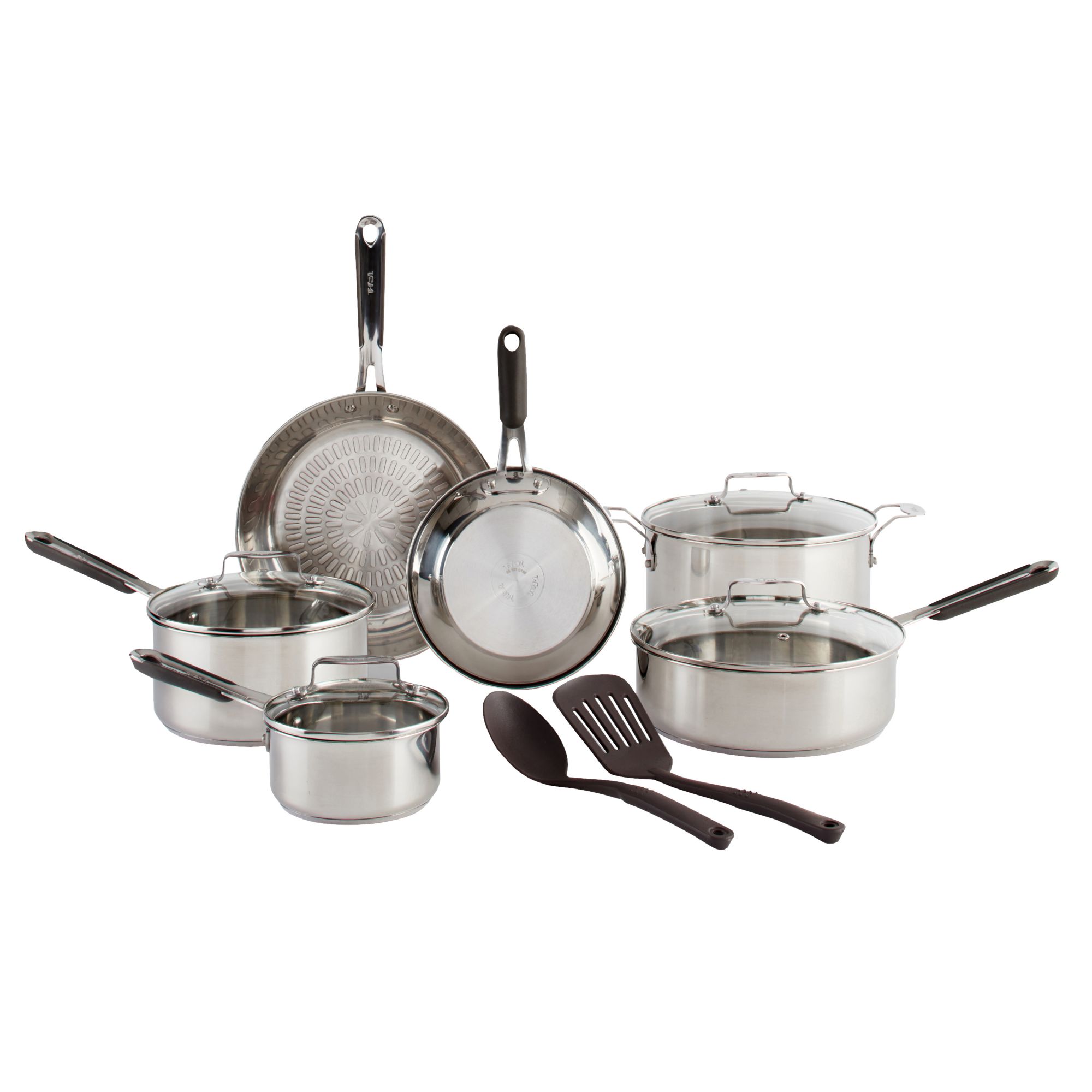 Get ultimate durability built to last with the T-fal Expert Pro 12-Pc. Stainless Steel Cookware Set. The Techno Release raised interior pattern provides easy release and cleanup when crafting meals for the whole family. Riveted stainless steel silicone grip handles give a comfortable and sturdy grip while cooking.