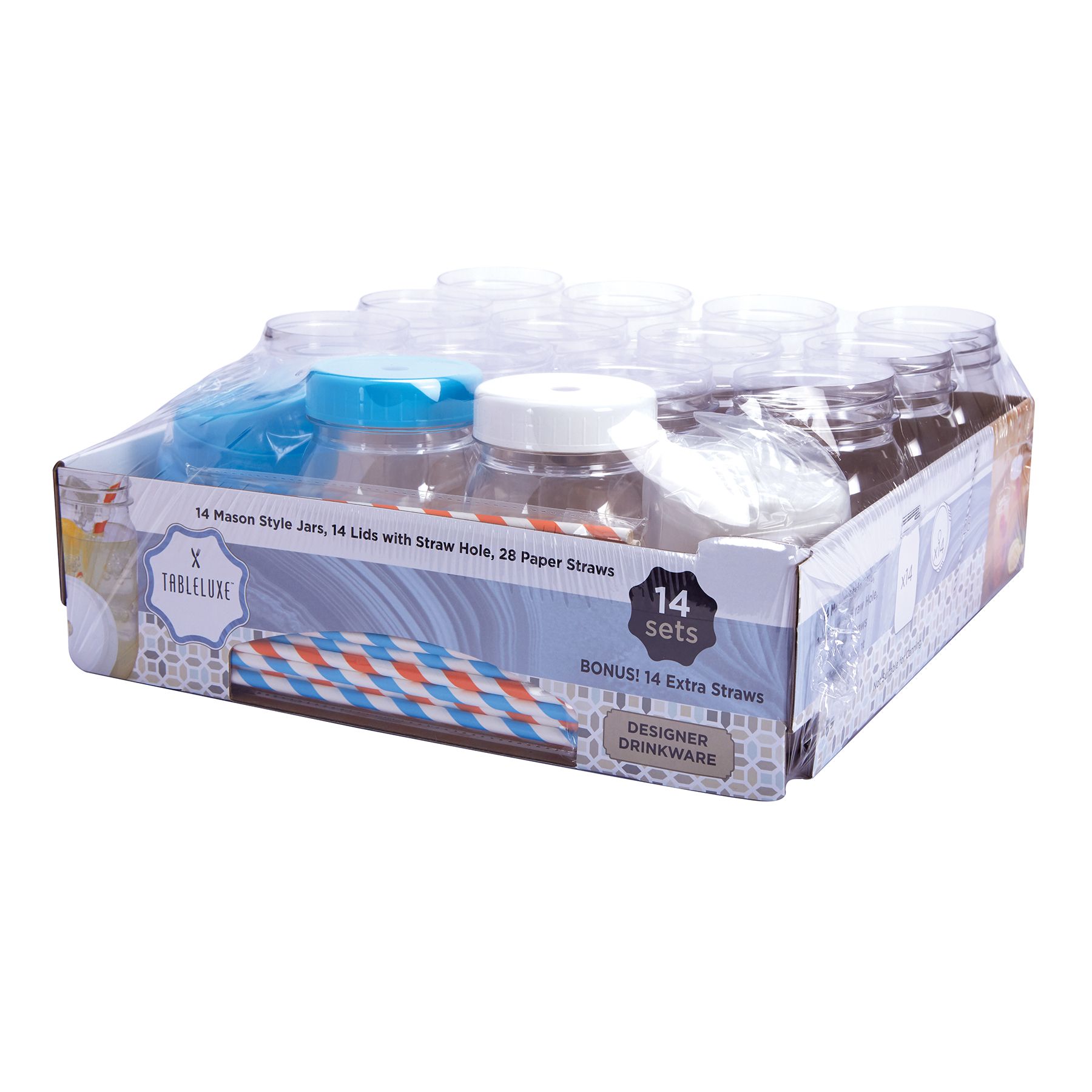 Tableluxe Mason Style Jars With Lids and Straws, 14 ct.