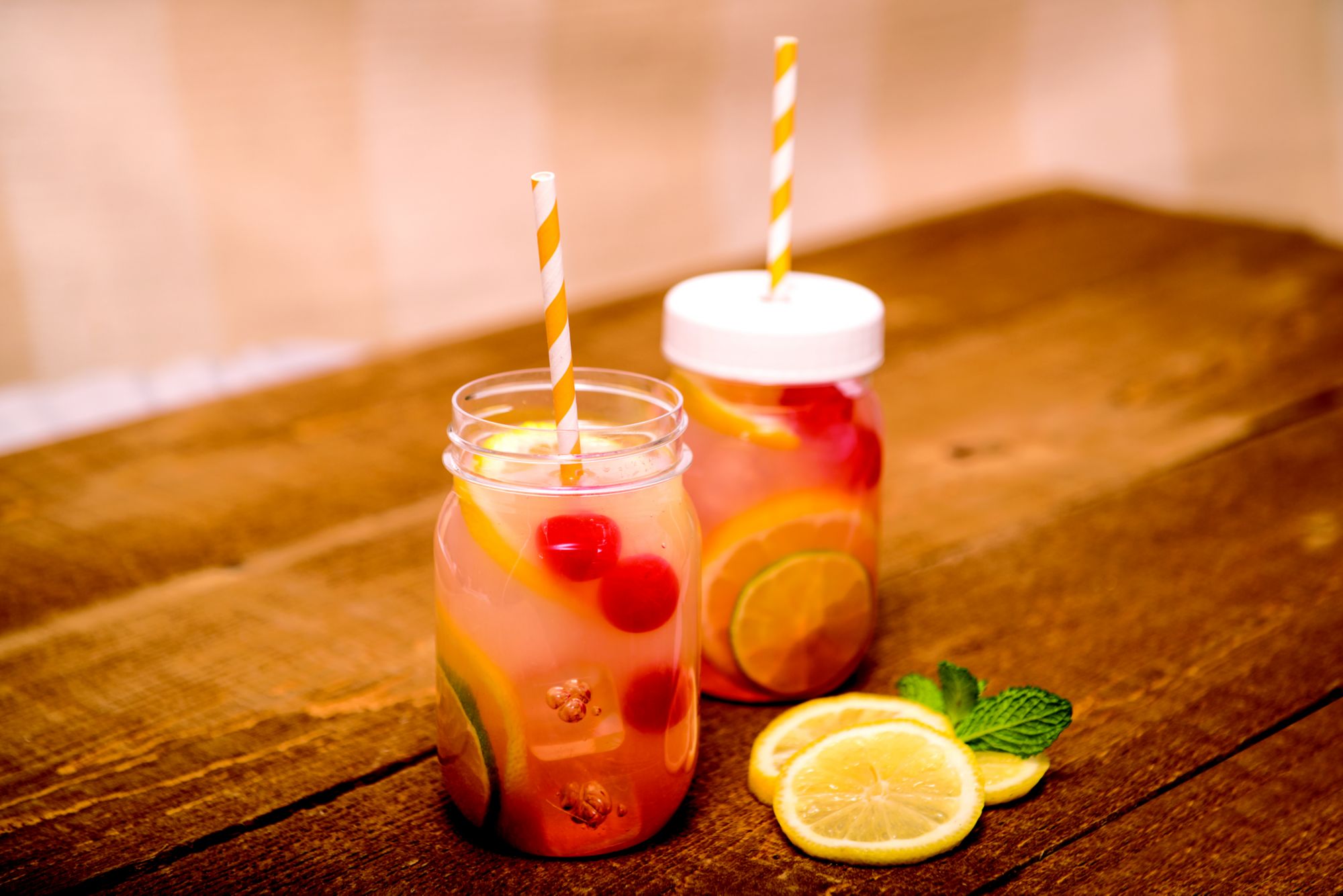 Includes 14-count of mason jar style drinkware with straw hole lids and 28-count of straws
