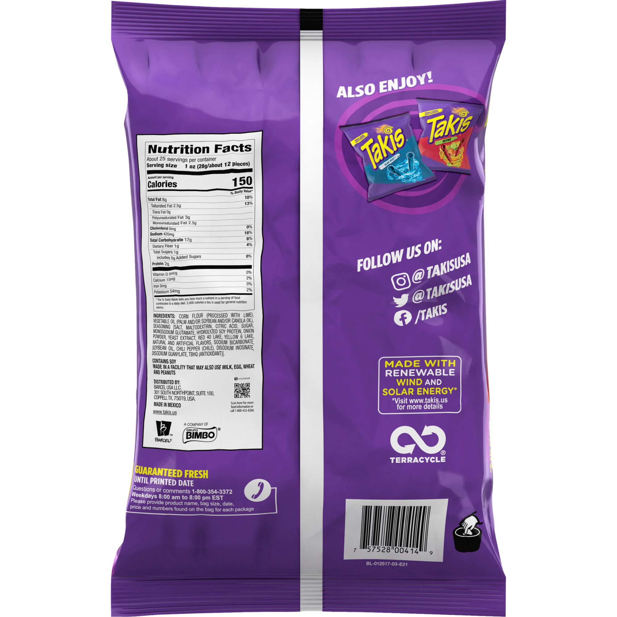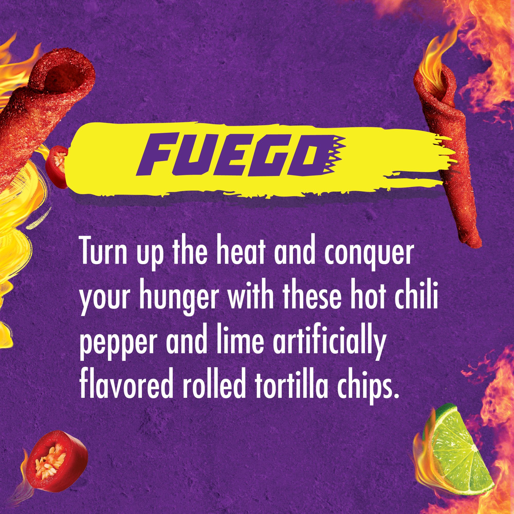 Mix-up how you snack with Takis Fuego Hot Chili Pepper and Lime Tortilla Chips. Give your taste buds the gift of launching into an unexplored universe of sensational flavor combinations. Takis Fuego set out to pioneer irresistible snacks that unleash tantalizing waves of flavor and deliver an unbeatable crunch in every single bite. These tortilla chips are made with rolled corn, and deliver bold flavors that fire up your tastebuds with every bite.
