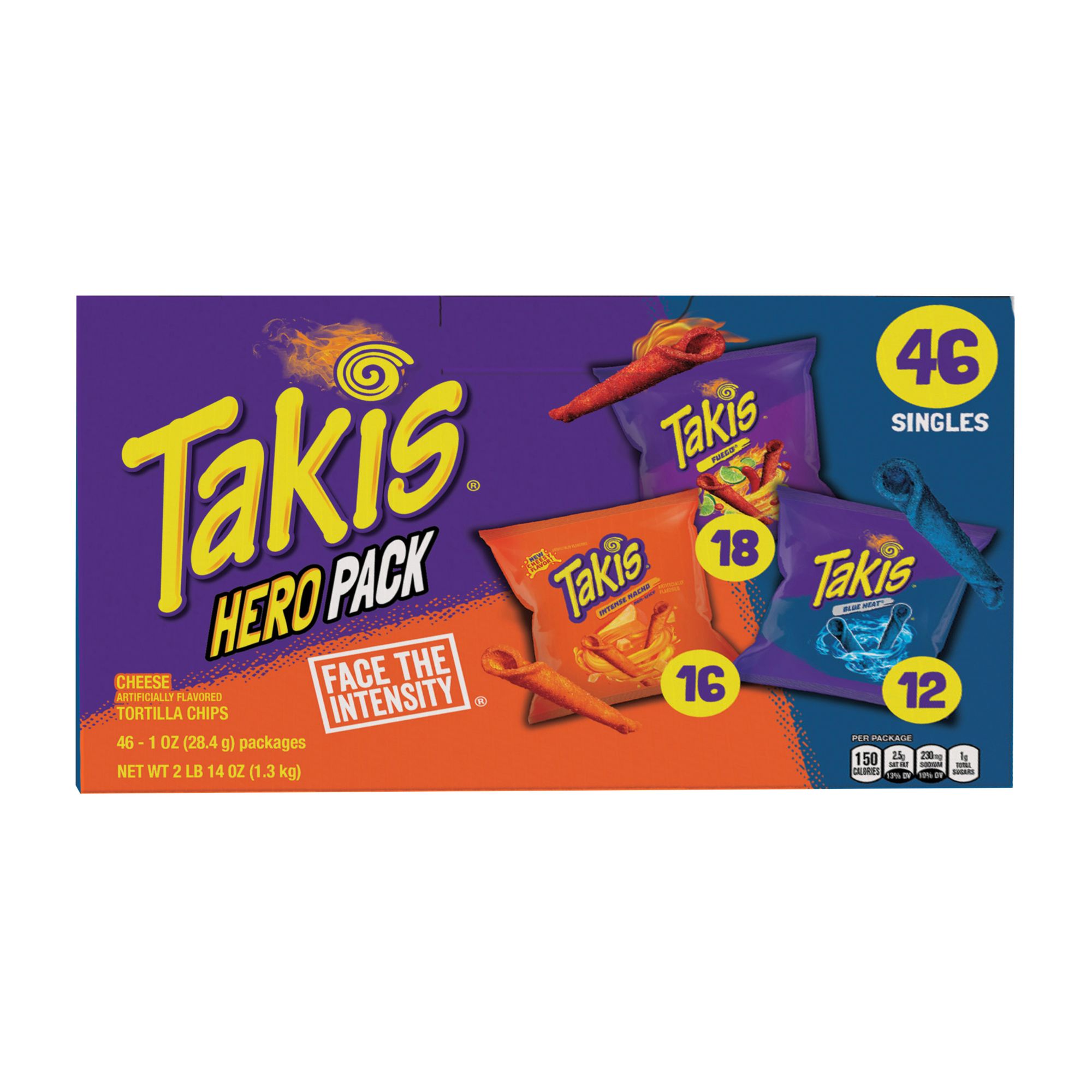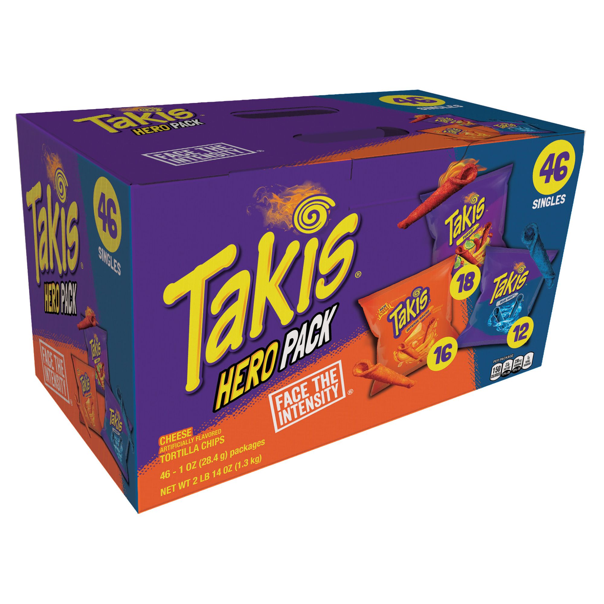 Remix your snack game with the intense taste of three of your favorite flavors! Boldly fire up your tastebuds with your choice of Fuego, Blue Heat, and Intense Nacho artificially flavored rolled tortilla chips. Packaged to match your lifestyle, these rolled tortilla chips make the perfect snack option for when you’re up late studying, headed to school, embarking on an exciting road trip, or hanging with friends at a party. Takis makes their rolled tortilla chips with one thing in mind; to deliver a worthy snack for those who dare. And this multipack case is the perfect way to share boldly-flavored snacks that can conquer the cravings of anyone.