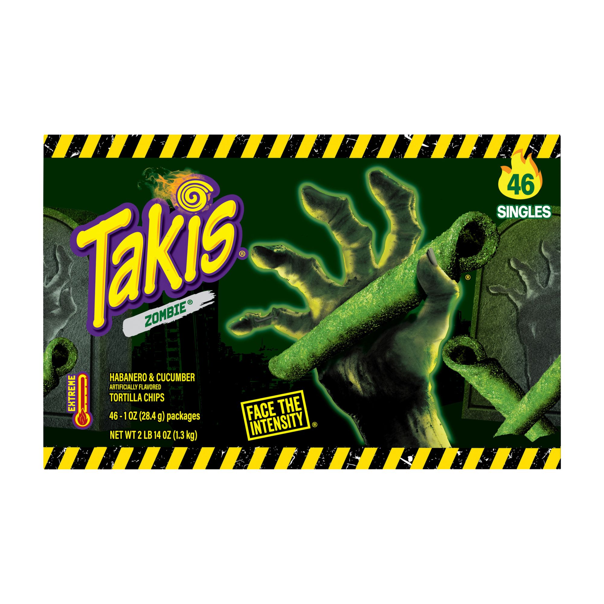 Prepare yourself for an unparalleled snack experience that will send shivers down your spine! These extraordinary rolled crunchy tortilla chips corn snacks have been crafted with a formidable blend of fiery habanero pepper and tantalizing cucumber flavored spices, delivering a taste sensation that is perfectly suited to outlasting the relentless hordes of the undead during a heart-pounding zombie apocalypse. Seize the opportunity to claim your very own Takis Zombie today! Available for a limited time only.