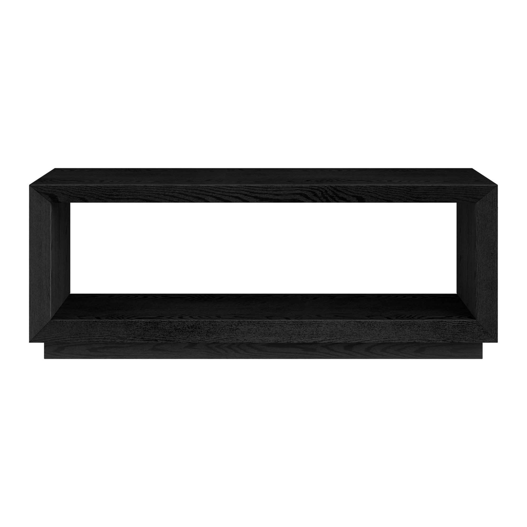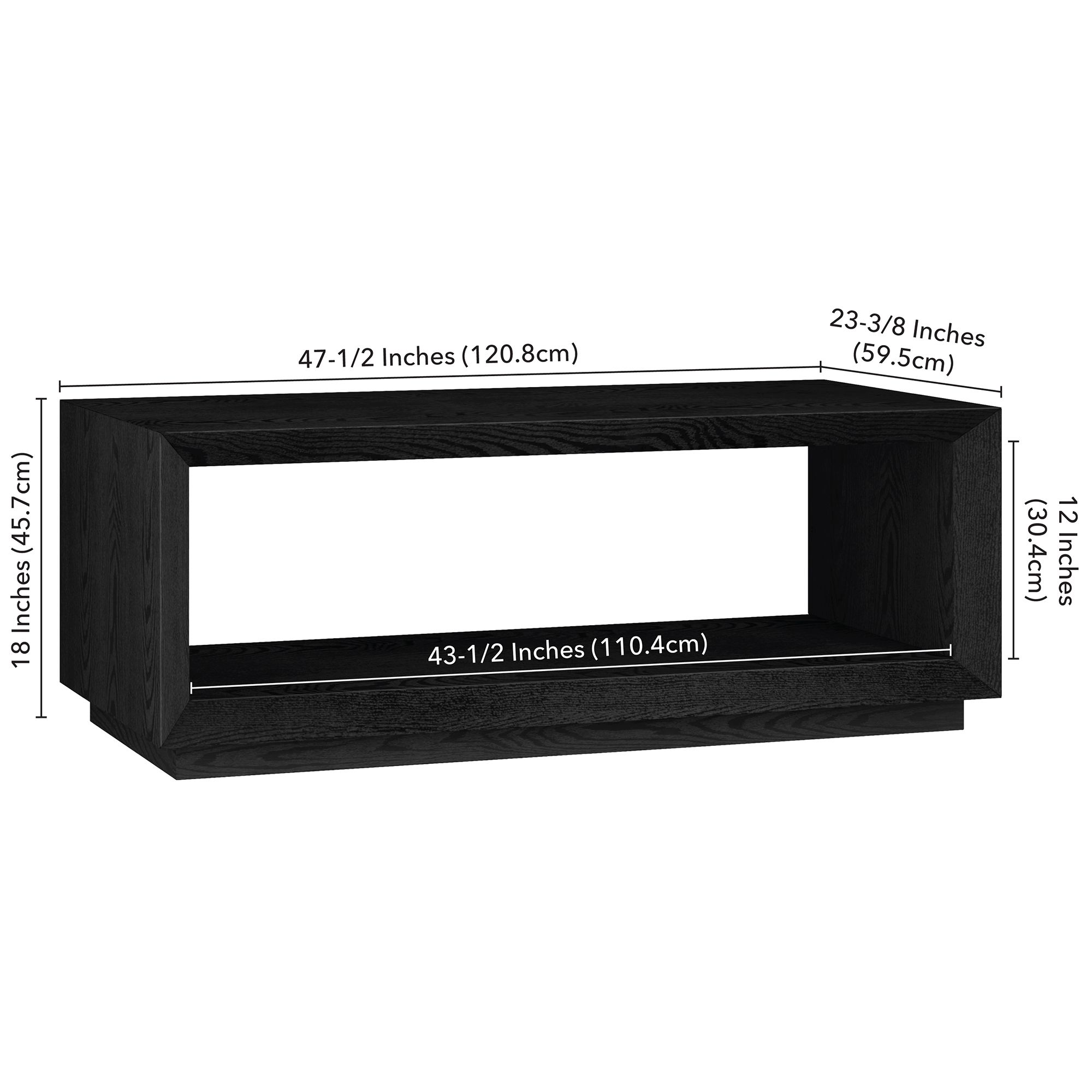 Striking in its simplicity, this modern coffee table emphasizes clean lines and straightforward design. The table's seamless design is given extra dimension with the beveled banding around the edges. The plinth base anchors the look, while the natural wood-look finish adds texture and tonal variation to your your living room, family room, or office.