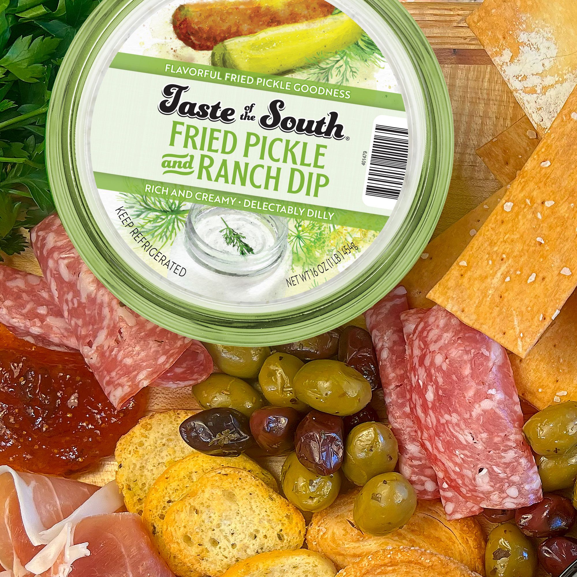 Taste of the South Fried Pickle & Ranch Dip is the perfect creamy, crunchy, and zesty companion to add a little kick to anything that can be dipped. The cream cheese, sour cream, real bits of dill pickle, and ranch seasoning seal the deal on flavor! It is even great on burgers!