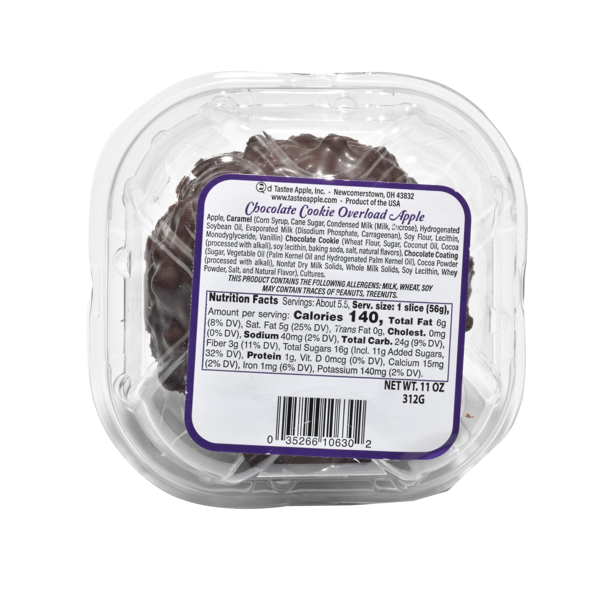 Includes caramel apple with chocolate cookie coating, 1 ct.