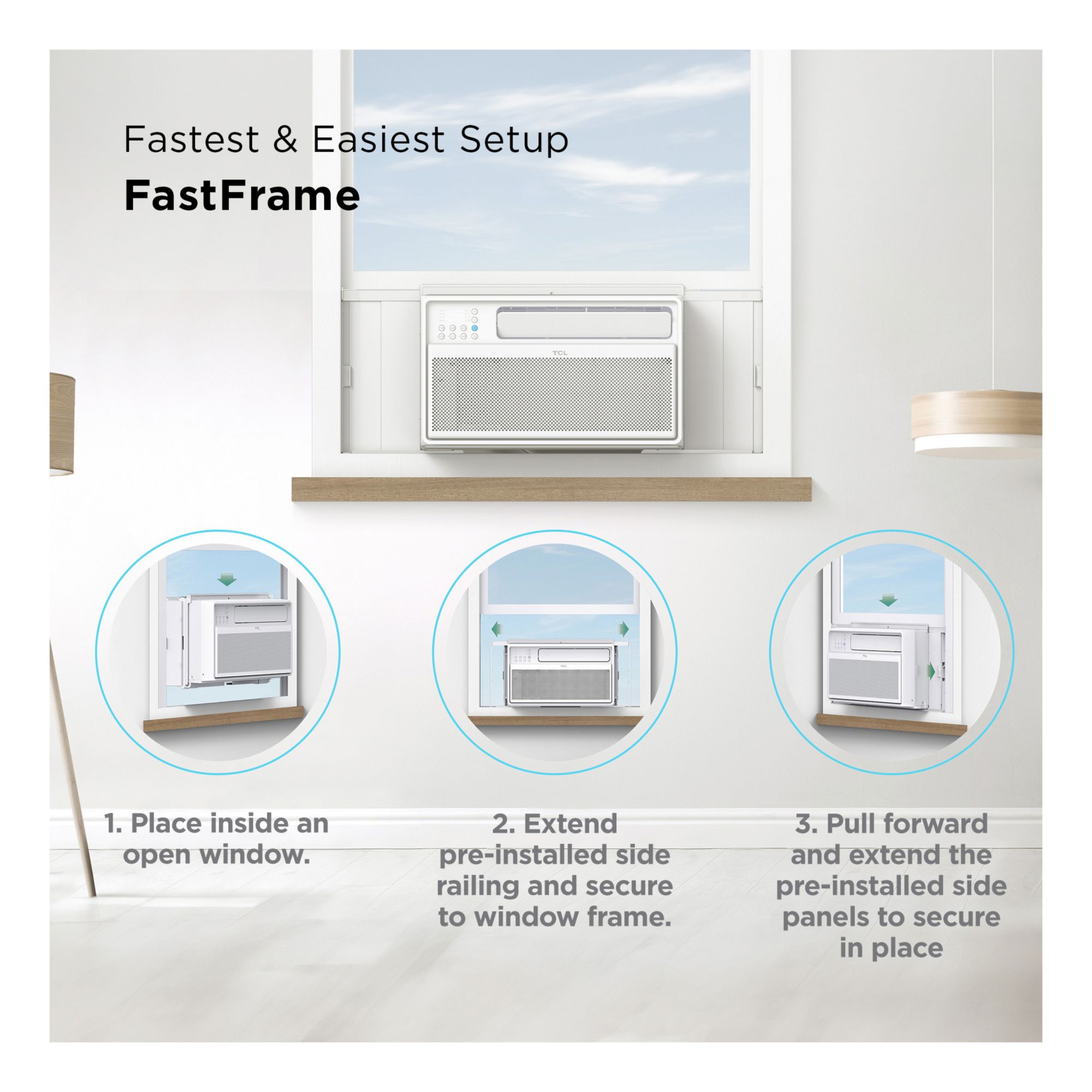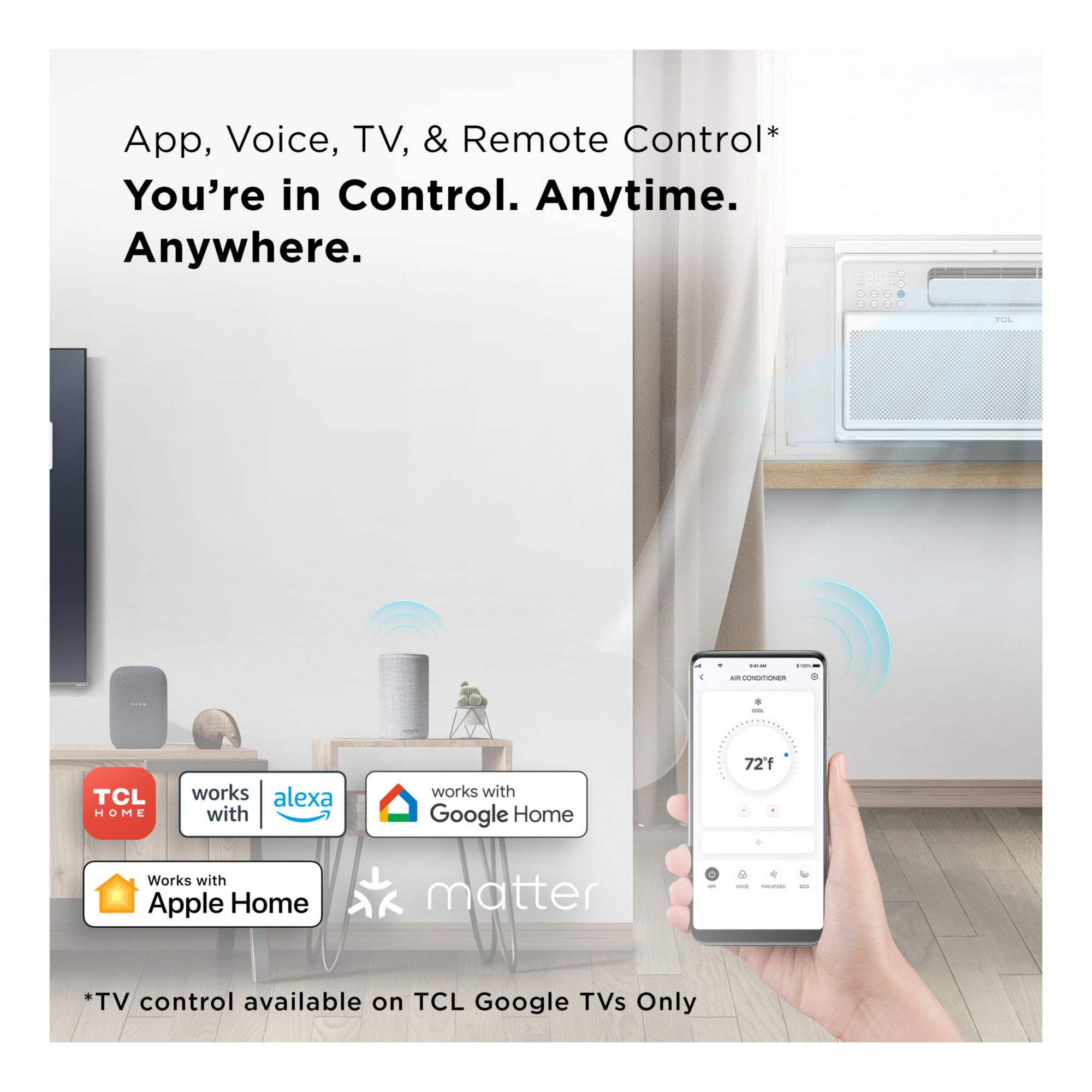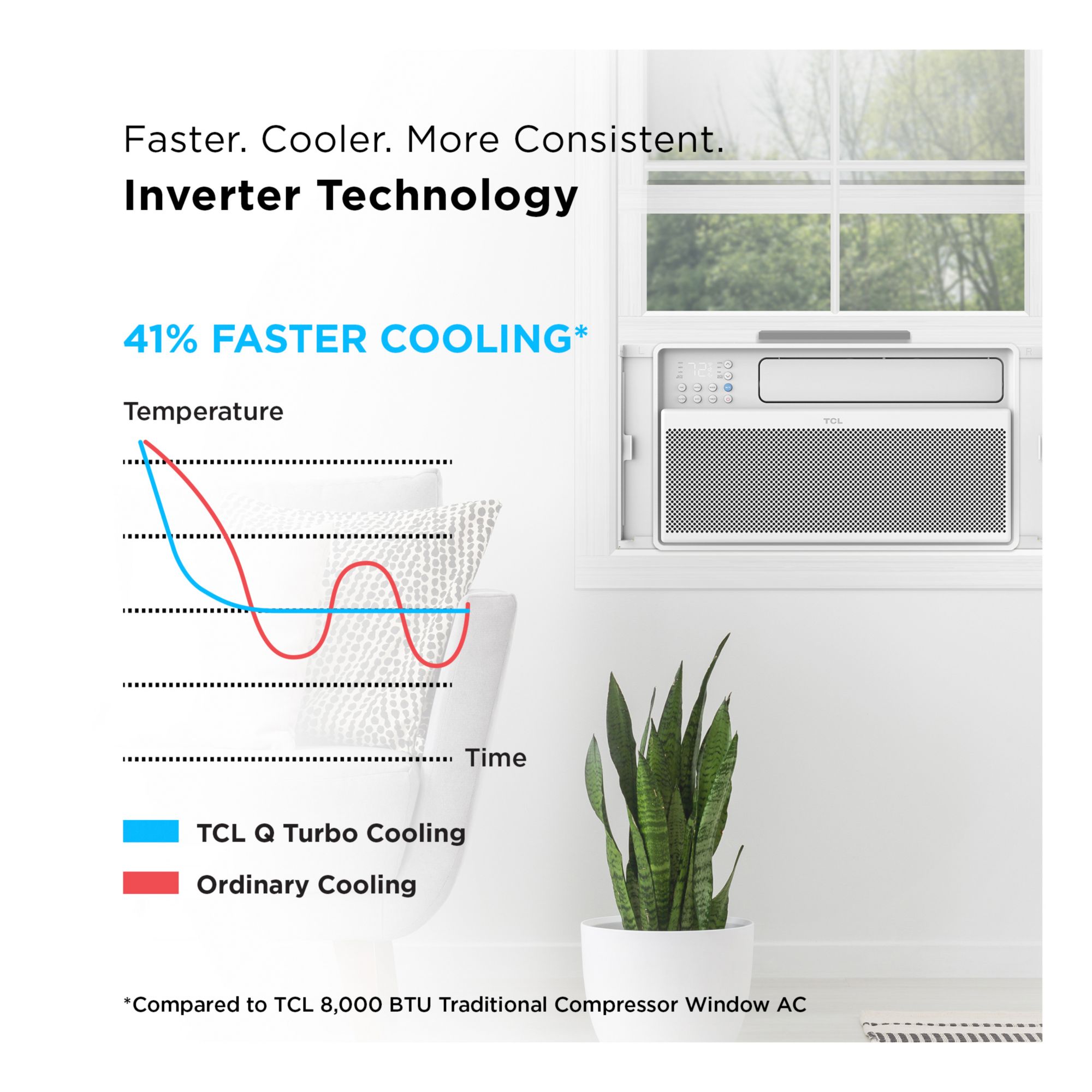Powerful 8,000 BTU cools rooms up to 350 sq. ft. Performance beyond quiet (as low as 40dB on Quiet mode) Up to 38% Energy Savings and energy Star certified to keep your bill low TCL's fastest and easiest installation ever Smart AI Inverter reaches colder temperatures faster and keeps the temperature more consistent (within +/- 1 degree F) Rigid frame design supports the unit fully, allowing you to open and close the window when you want fresh air Voice control with Alexa, Google Assistant, and Siri-enabled devices (now Matter Certified!) App & TV control with TCL Home App (control your device via your TV available now on TCL Google TV) Window Size Requirement: 26-36"W x 14.5"H Includes air conditioner
