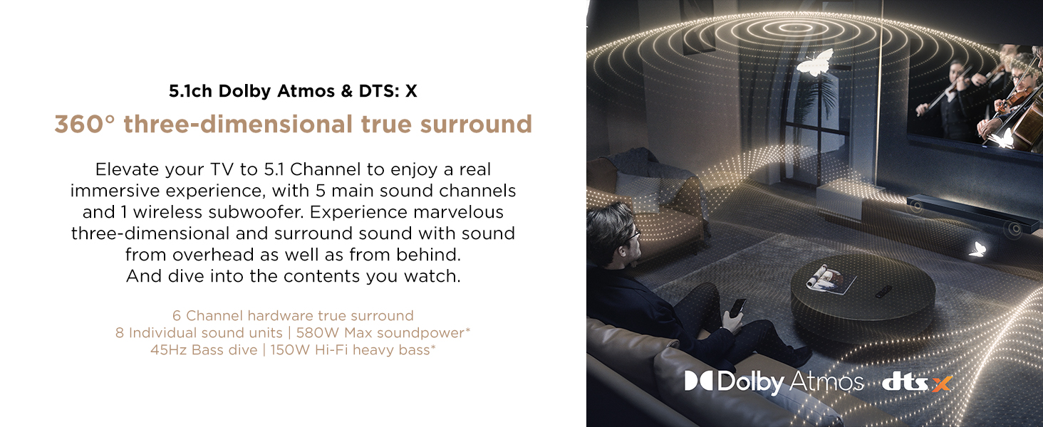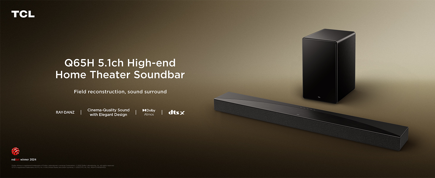 TCL Q65H Q Class 5.1 Channel Soundbar with Dolby Atmos, Ray Danz Technology, Wireless Subwoofer