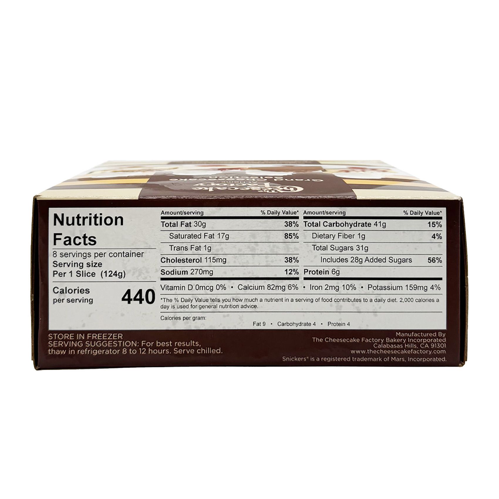 A combination of White Chocolate Raspberry Truffle Cheesecake, Chocolate Mousse Cheesecake, Snickers Bar Chunks & Cheesecake, and Strawberry Topped Cheesecake. These top sellers are very popular and are perfect for entertaining, for holidays and celebrations. Cheesecake is boxed individually and shipped frozen. Store in freezer at 0°F or below. Thaw in refrigerator at 36-41°F. Allow 8-12 hours to thaw, keeping product covered to prevent dryness. Serve no later than 7 days after thawing. Store in refrigerator after thawing.