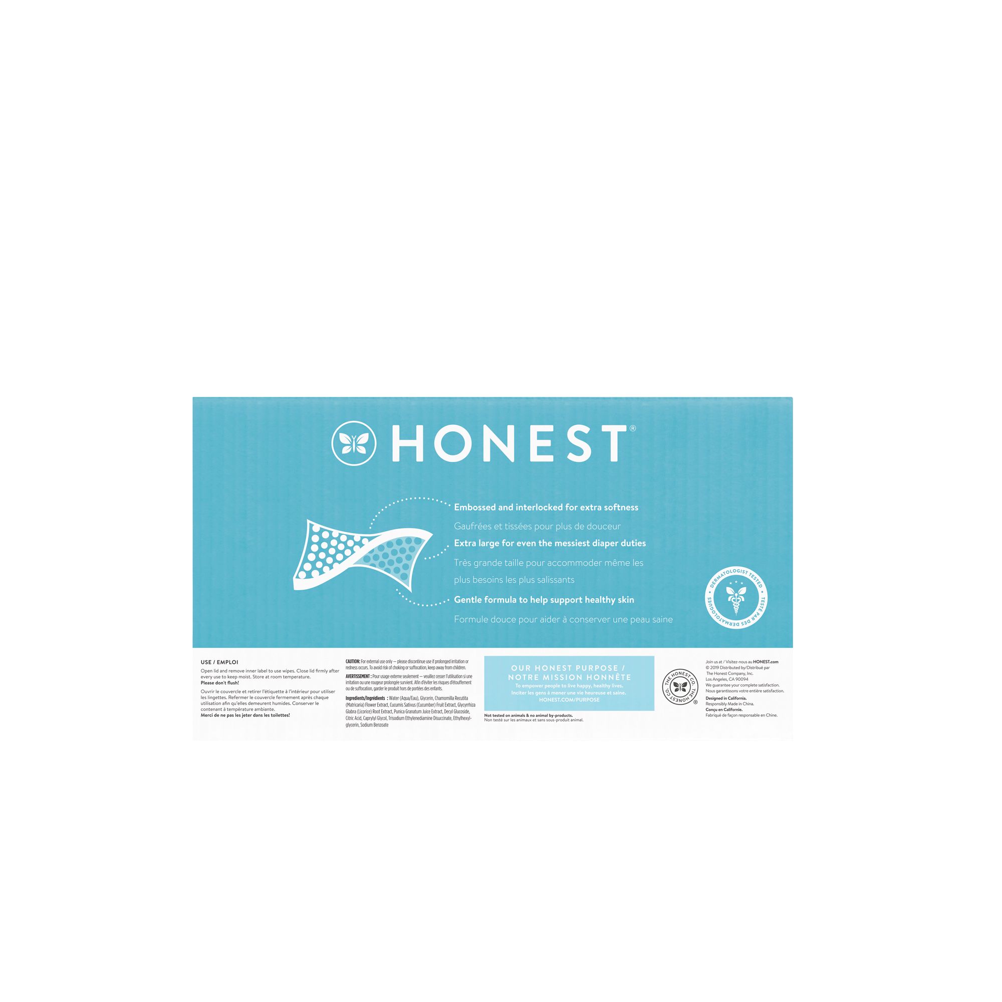 Looking for the best baby wipes for your little one? Made with delicate skin in mind, sensitive wipes don't include nasty chemicals or parabens. From diaper change duty and messy fingers to sticky counters and gunked-up toys — the ultra-durable, extra-thick Honest wet wipes get the job done. These hypoallergenic, 100% plant-based, dermatologist-tested wipes contain more than 99% water and zero harsh chemicals, making them gentle enough for sensitive skin. The convenient pop-up dispenser makes the ultra-thick, ultra-soft baby wipes perfect for home or on the go. Honest wet wipes are thoughtfully designed and contain everything you need and nothing you don’t.