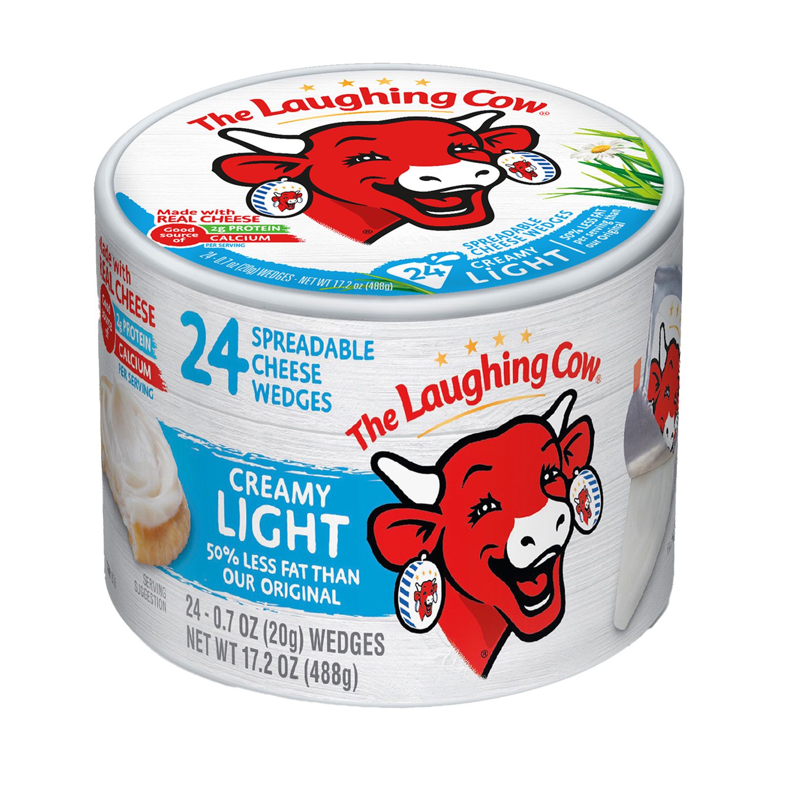 Spreadable cheese that's great for snacking Creamy light Swiss cheese with a classic light flavor 35 calories per wedge No artificial flavors or preservatives Good source of calcium and protein Product of USA Includes 40% less packaging Includes 24-count of 1-oz. spreadable Swiss cheese wedges