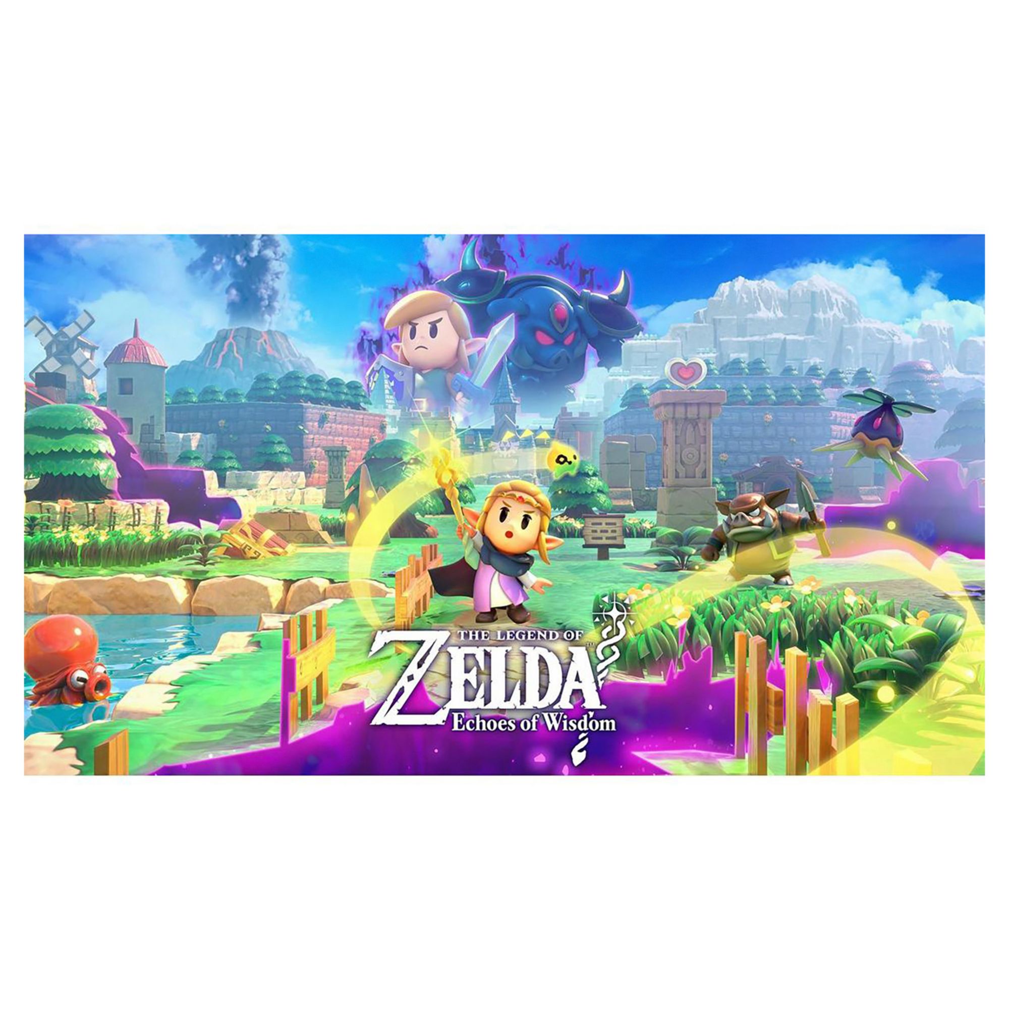 Save the kingdom of Hyrule—this time with the wisdom of Princess Zelda. The people of Hyrule are being stolen away by strange rifts that have appeared—and with a certain swordsman among the missing, it’s up to Princess Zelda to save her kingdom in a brand-new The Legend of Zelda story. Team up with the mysterious fairy, Tri, and use the Tri Rod to create “echoes,” which are imitations of things you find in the environment—then recreate those echoes whenever you like to solve puzzles and defeat enemies. Create echoes like water blocks to reach new heights, make bridges out of old beds, throw rocks at foes—or find your own creative combination of echoes to do things your way. You can even create echoes of monsters to fight at your side in combat.