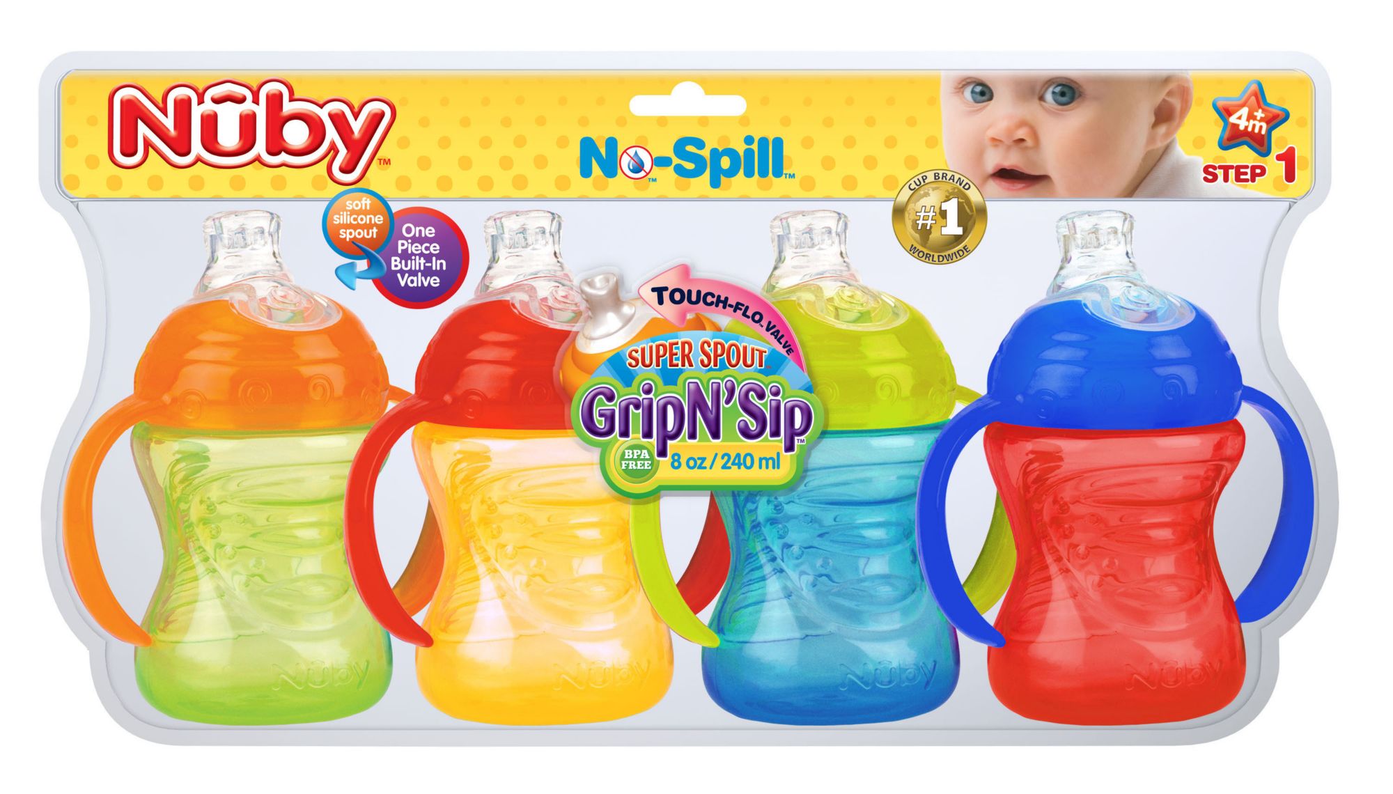 The Nuby No-Spill Super Spout Grip N' Sip Cup, 4 pk.