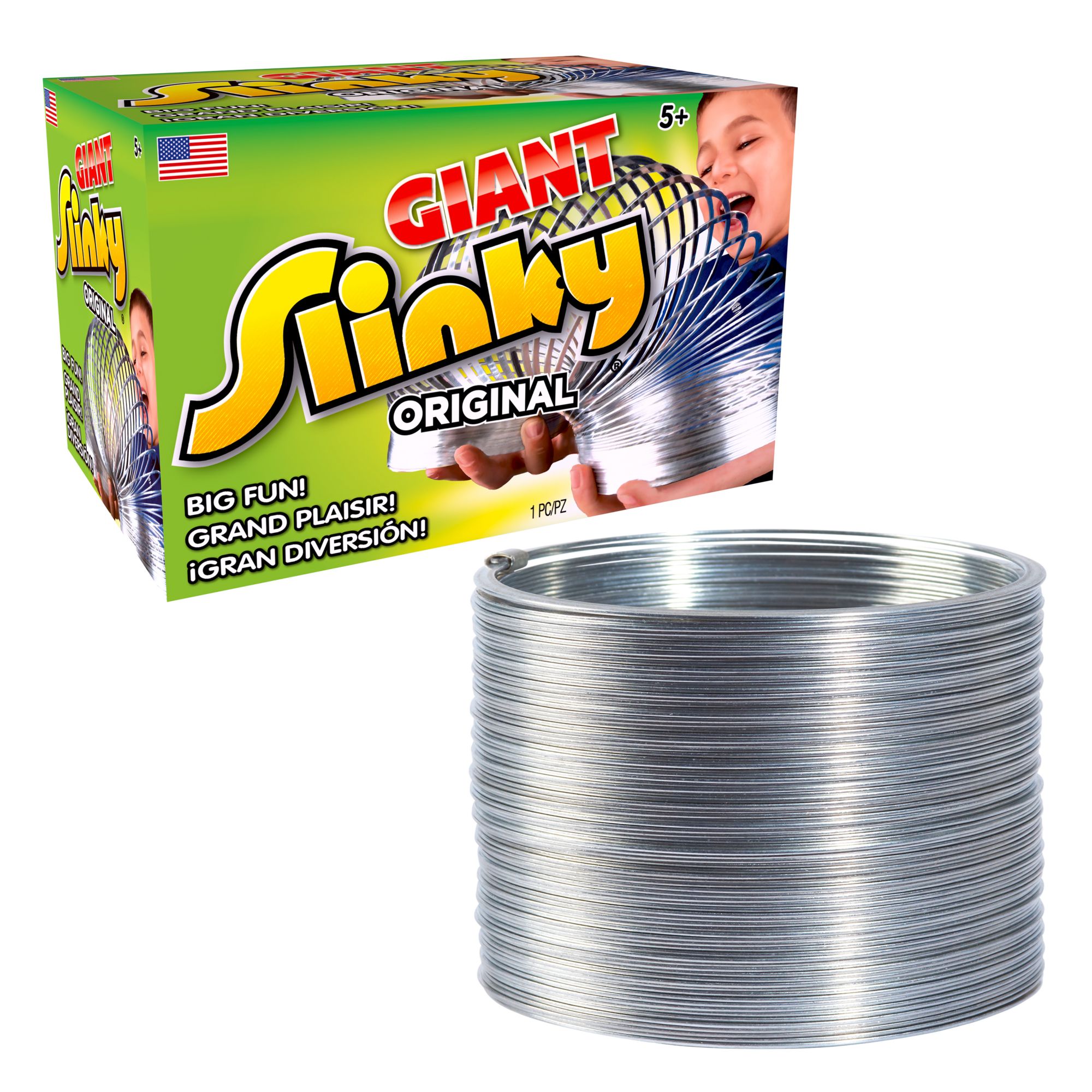 70% larger than the classic metal Slinky 3.5" in diameter Ideal for presents, party favors, Easter baskets, grab bags, prizes and stocking stuffers Ages 5+ Includes one giant metal Slinky