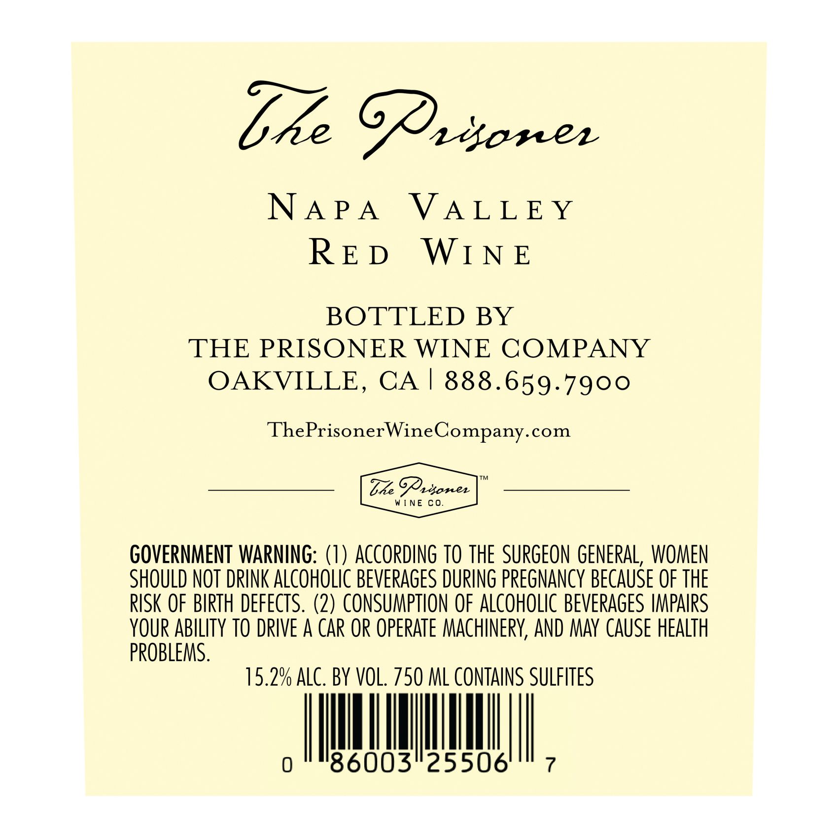 The Prisoner California Red Wine Blend, made with a diverse combination of dark red wine grapes, is luscious, smooth, and balanced. This California red grape wine is inspired by the blended wines made by Italian immigrants who originally settled in Napa Valley. It is an exquisite red blend wine offering aromas of dried blackberry, dried acai berries, and hints of cedar and tobacco leaf with sweet spices of clove, cinnamon, and nutmeg. These scents give way to a full-bodied wine with ripe dark cherry, blackberry coulis, and subtle anise flavors. Barrel aging took place in a combination of old and new French and American oak barrels. This red California wine pairs well with grilled meats. Enjoy a glass of wine on its own, savoring this delicious red wine's smooth finish that lingers on the palate. For best taste, store this 750ml bottle of red wine at room temperature, but chill it for at least 30 minutes before serving. Please enjoy our wines responsibly. 2025 The Prisoner Wine Company, Oakville, CA Please enjoy our wines responsibly. 2025 The Prisoner Wine Company, Oakville, CA.
