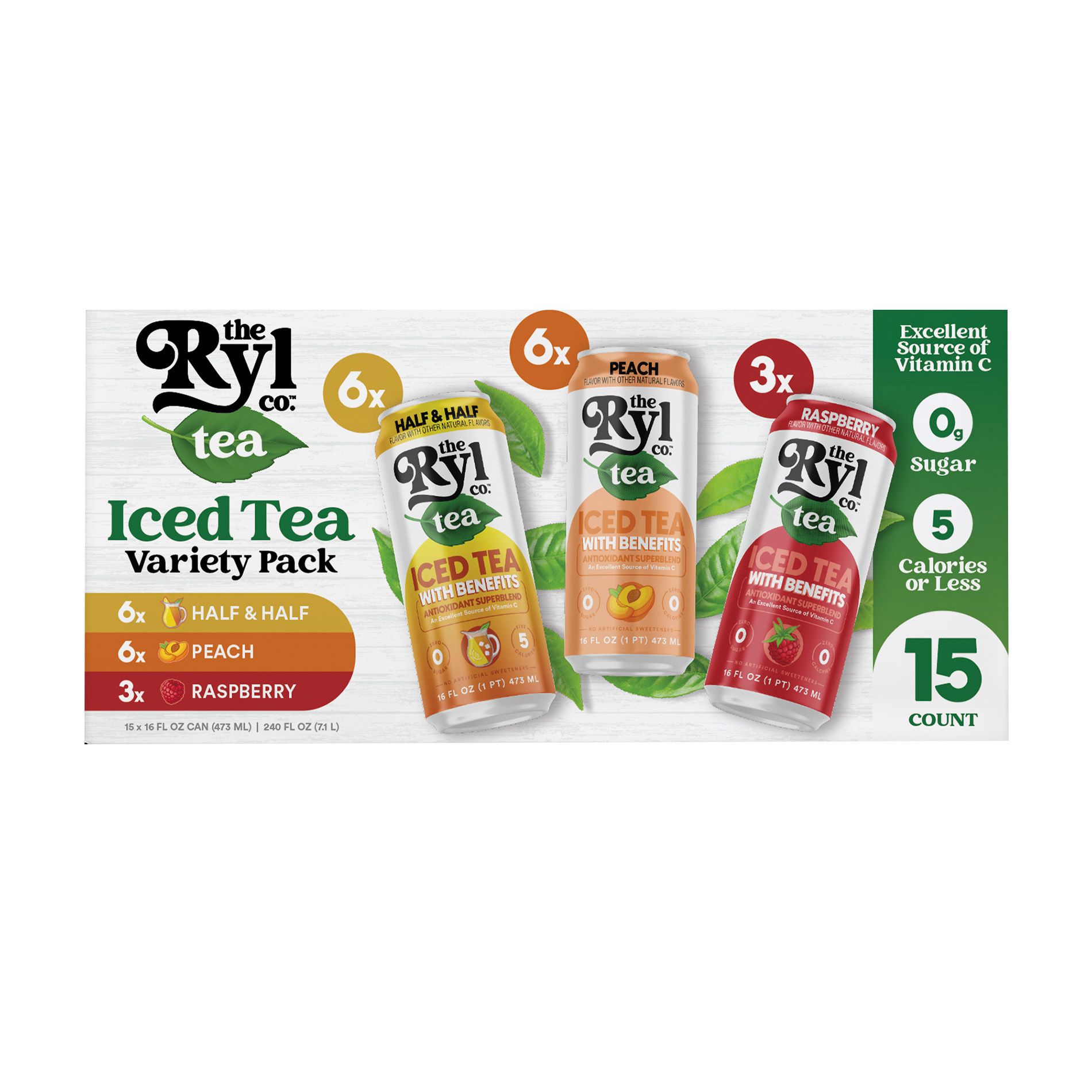 The Ryl Co. Iced Tea Variety, Half & Half Iced Tea, Peach Iced Tea, Raspberry Iced Tea, 15 pk./16 oz.