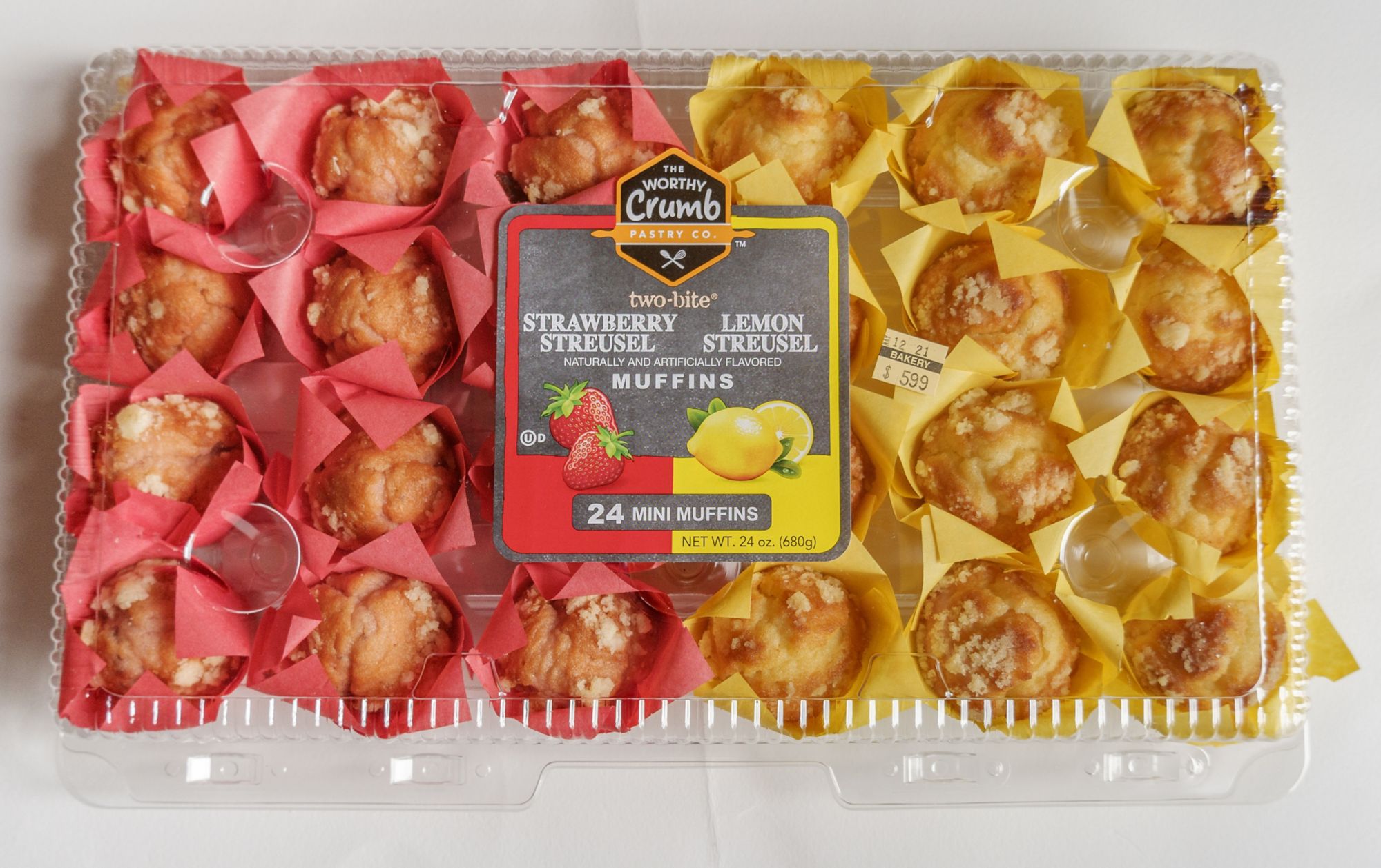 Includes strawberry streusel and lemon streusel mini muffins, 24 ct.