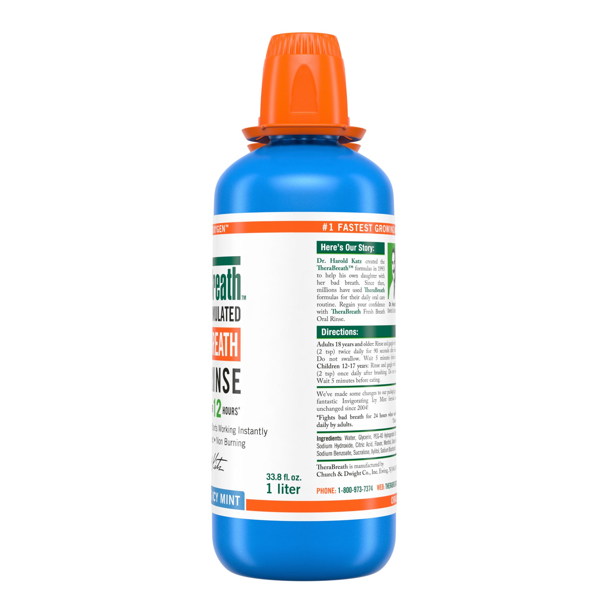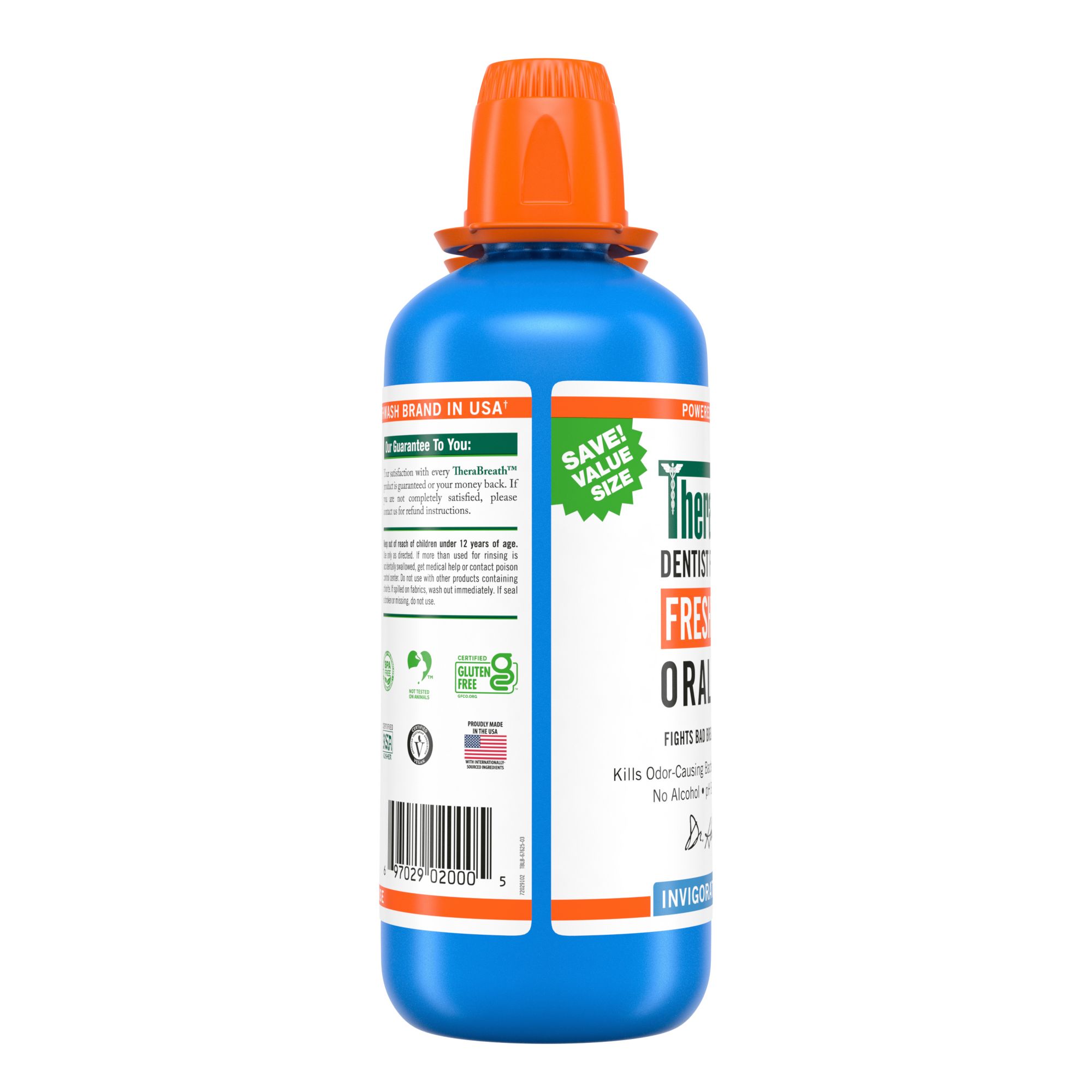 Fights bad breath: TheraBreath Fresh Breath Mouthwash fights bad breath for 24 hours when used every 12 hours after brushing and flossing.