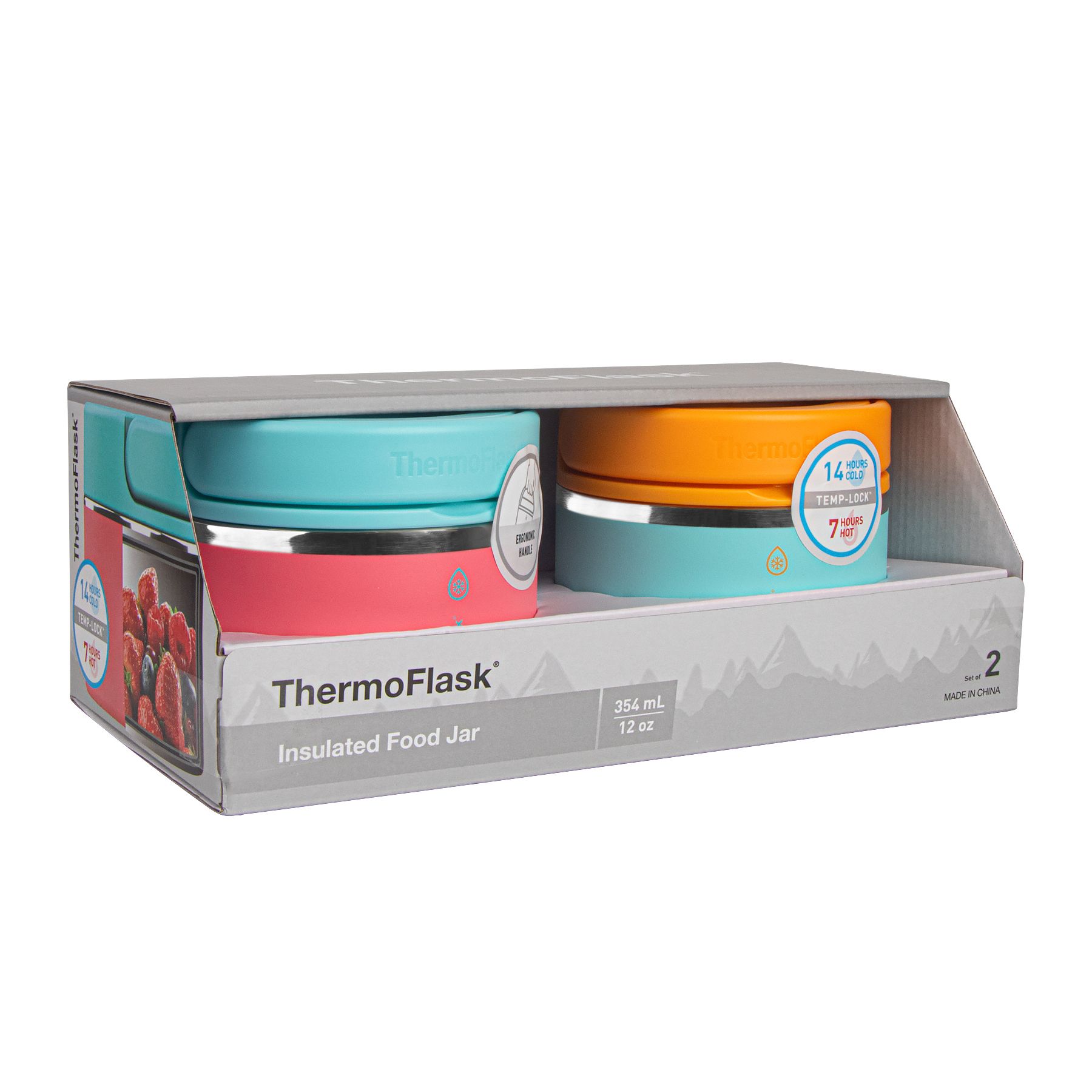 Thermoflask 12 oz. Insulated Food Jar, 2 pk. - Sugar Coral Maui Blue/Maui Blue Sunrise Orange