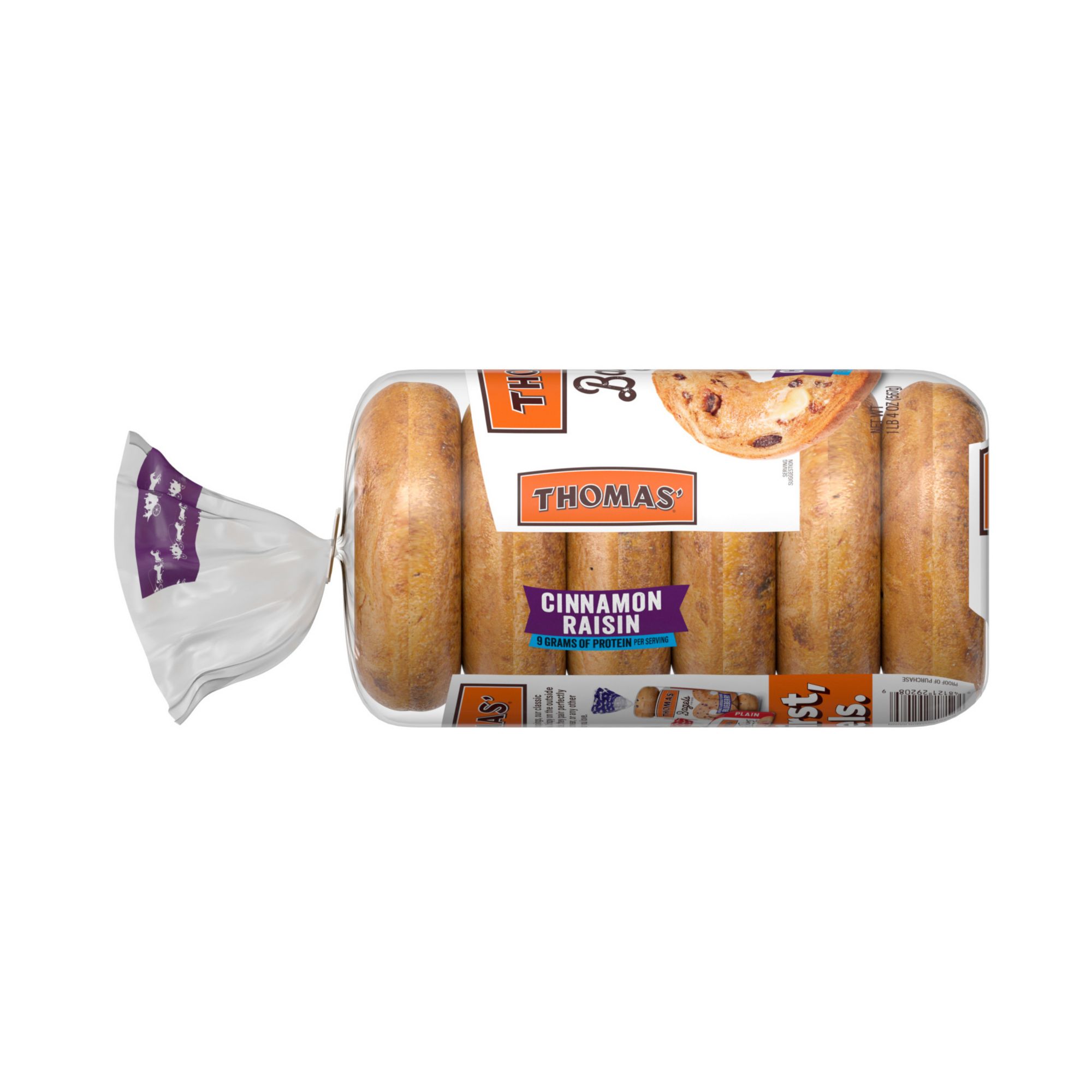Whether it's a don't-wake-me-up lazy morning or a rushing-to-the-office one, Thomas' Cinnamon Raisin Swirl Bagel are delicious combination of raisin and cinnamon that will soon become your go-to favorite. Comes with 8g of protein per piece, they're a healthy snack choice.