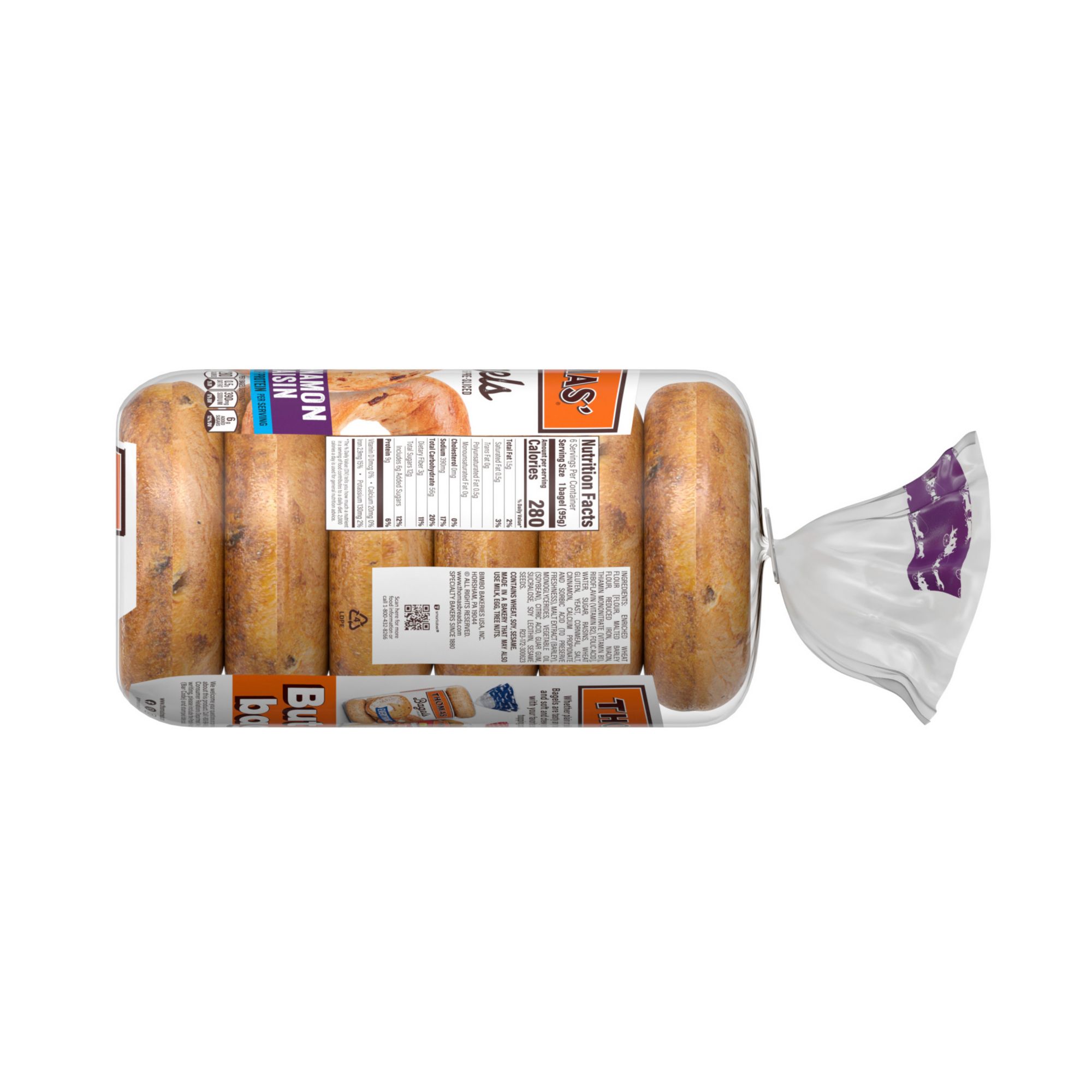 Thomas' Cinnamon Raisin Swirl Bagels, 6 ct.