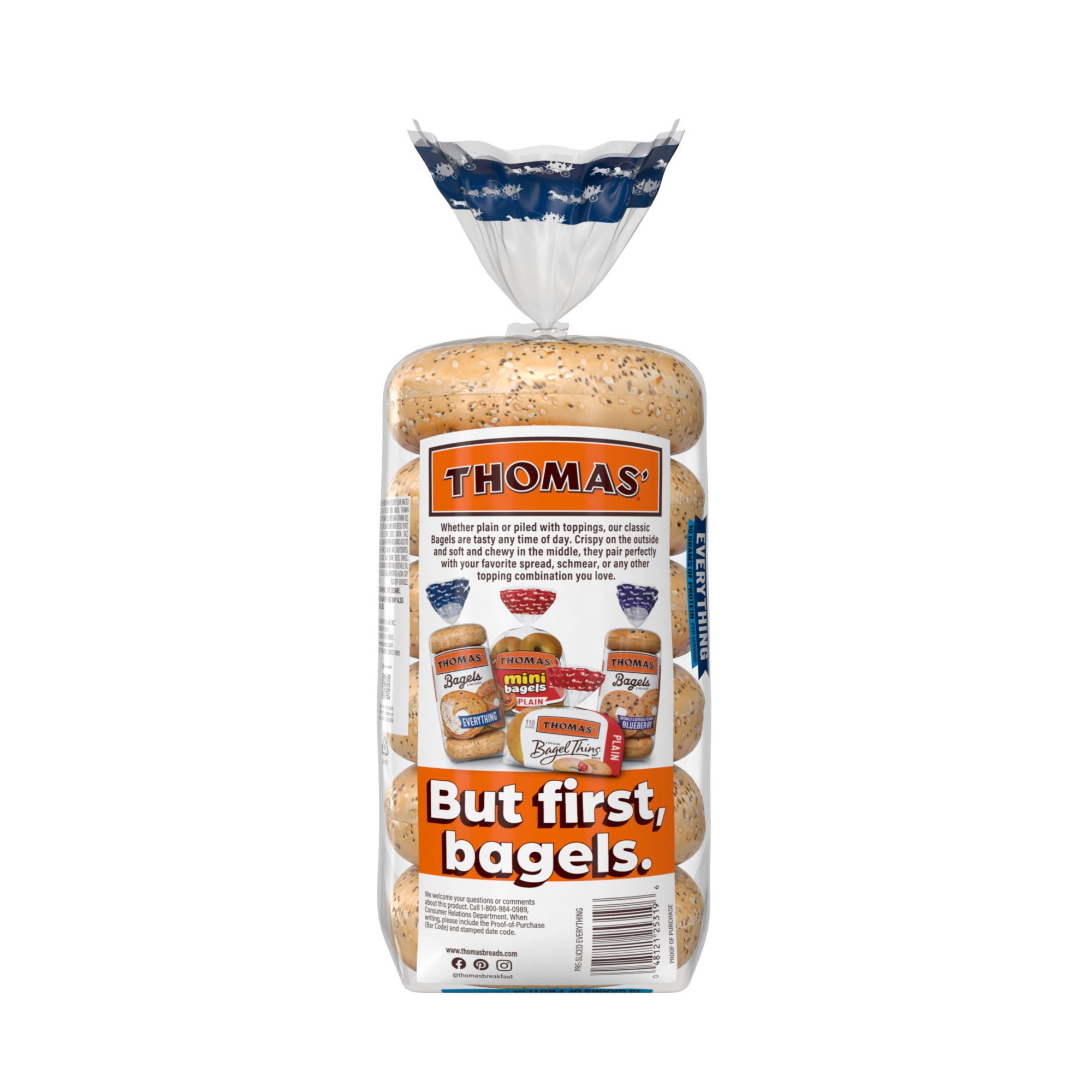Just as aromatic as they are delicious, these pre-sliced Thomas' Everything Bagels offer an effortlessly enjoyable addition to any breakfast. Their bold flavor comes from a delicious mixture of garlic, seeds and onions.