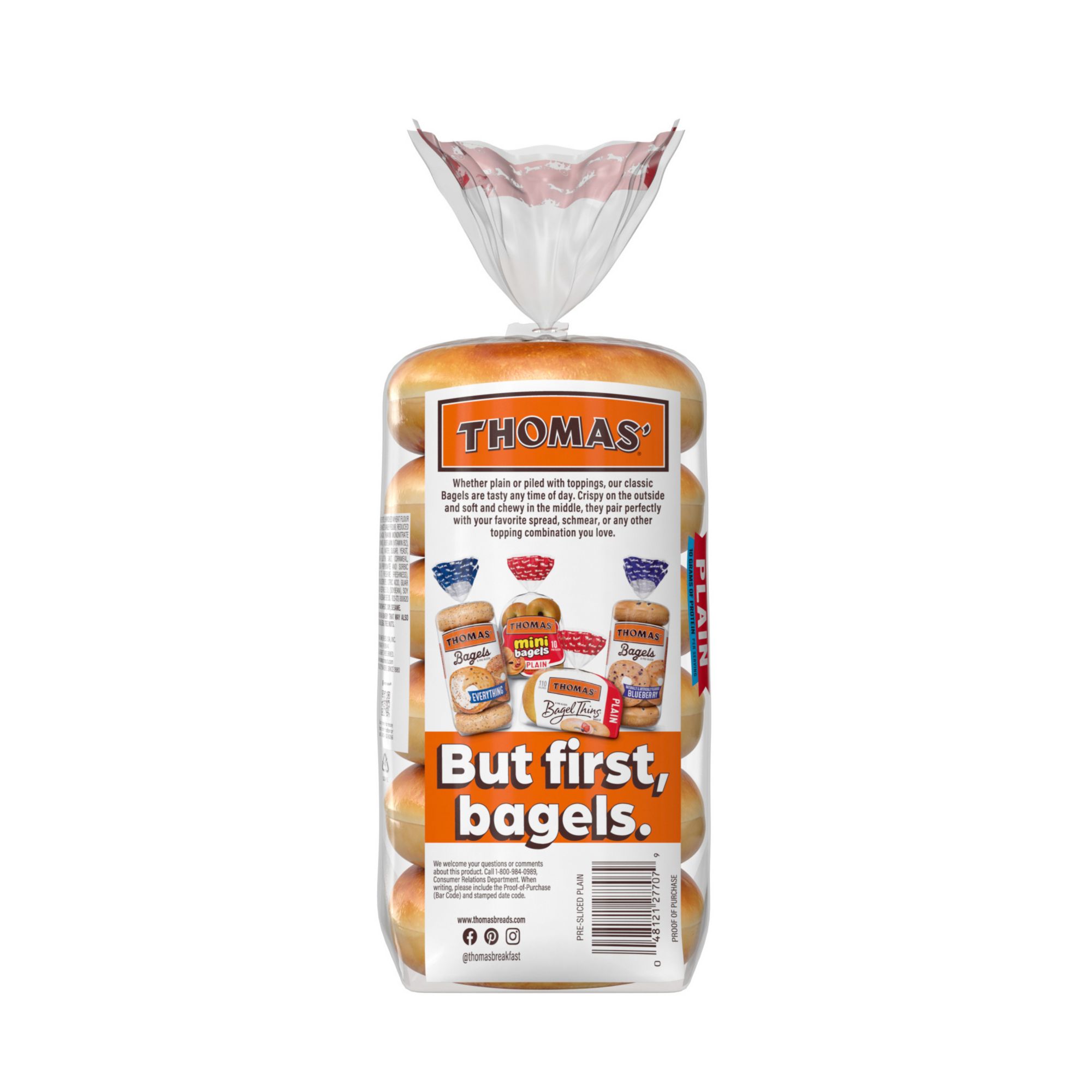 Made with high-quality ingredients, these classic Thomas' Plain Bagels are a delicious breakfast or in-between meal snack. Just spread some butter, cheese, jam or fresh cream on these to amp up the fun.