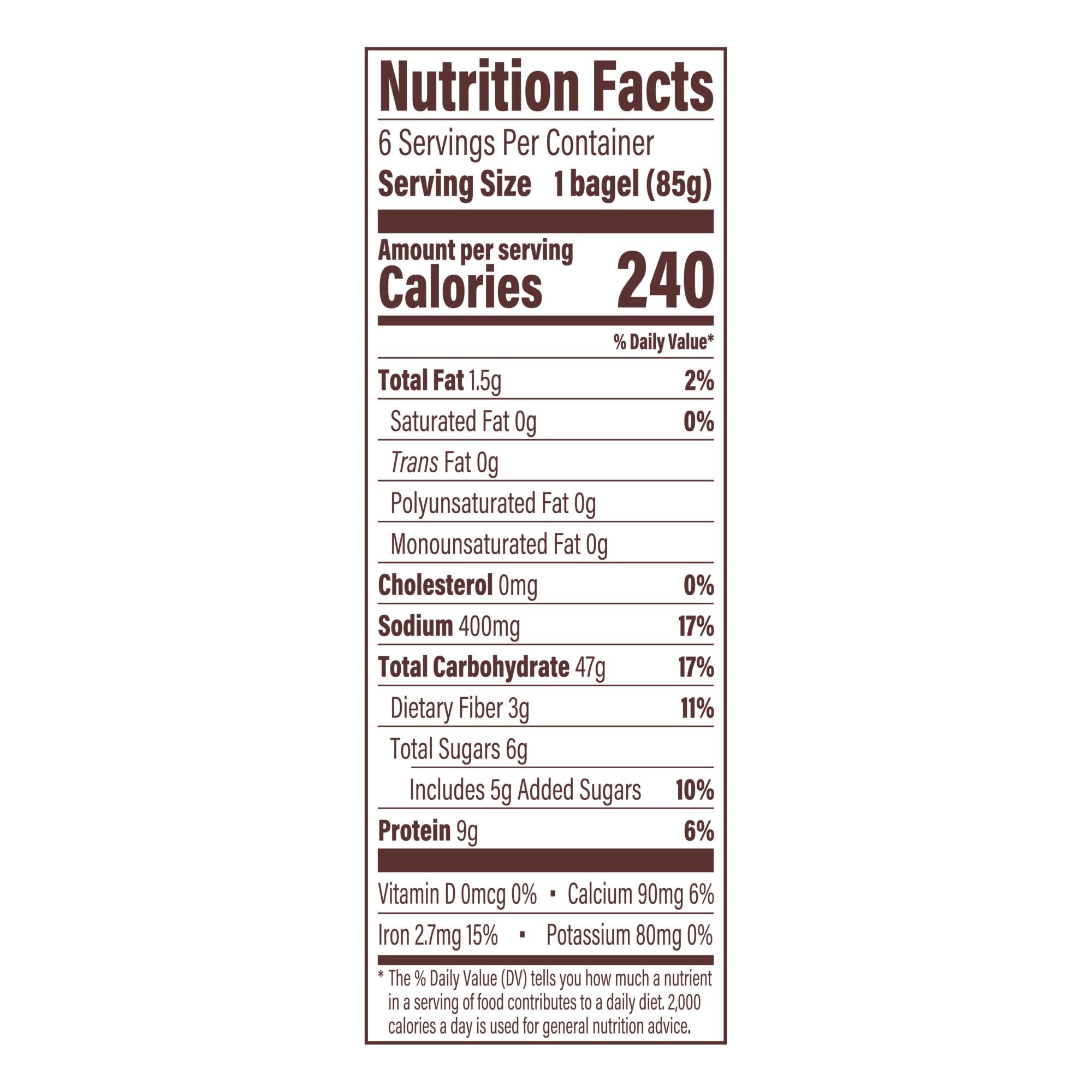 Includes bagels, 6 ct.
