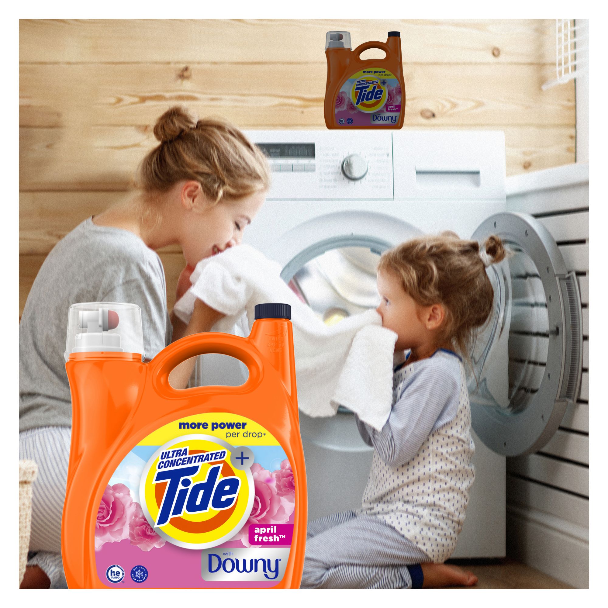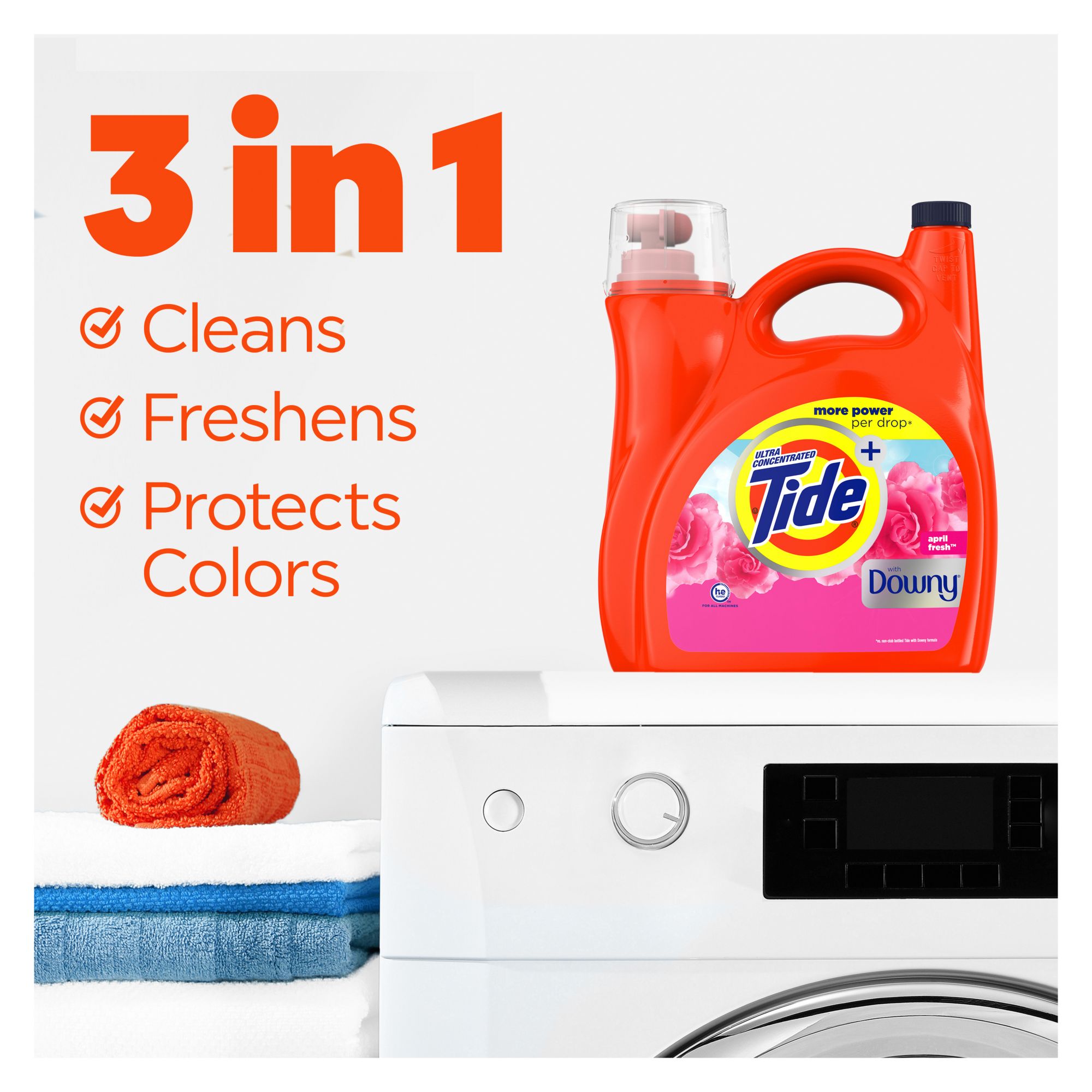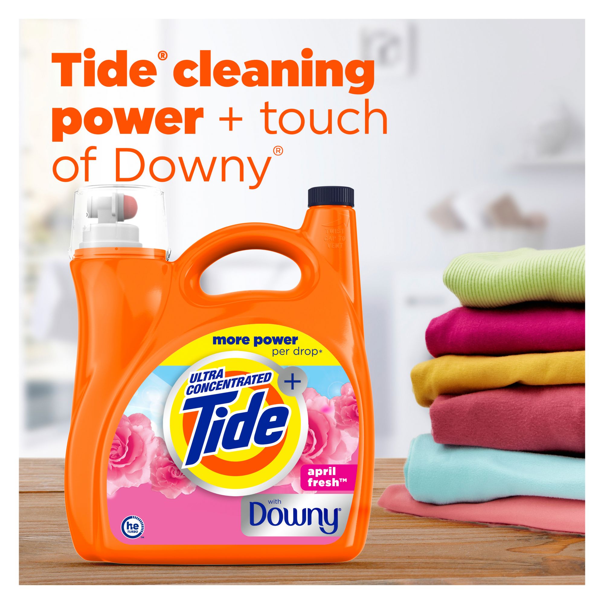 Tide with a Touch of Downy liquid detergent combines Tide's powerful clean with the freshness of Downy's iconic April Fresh scent