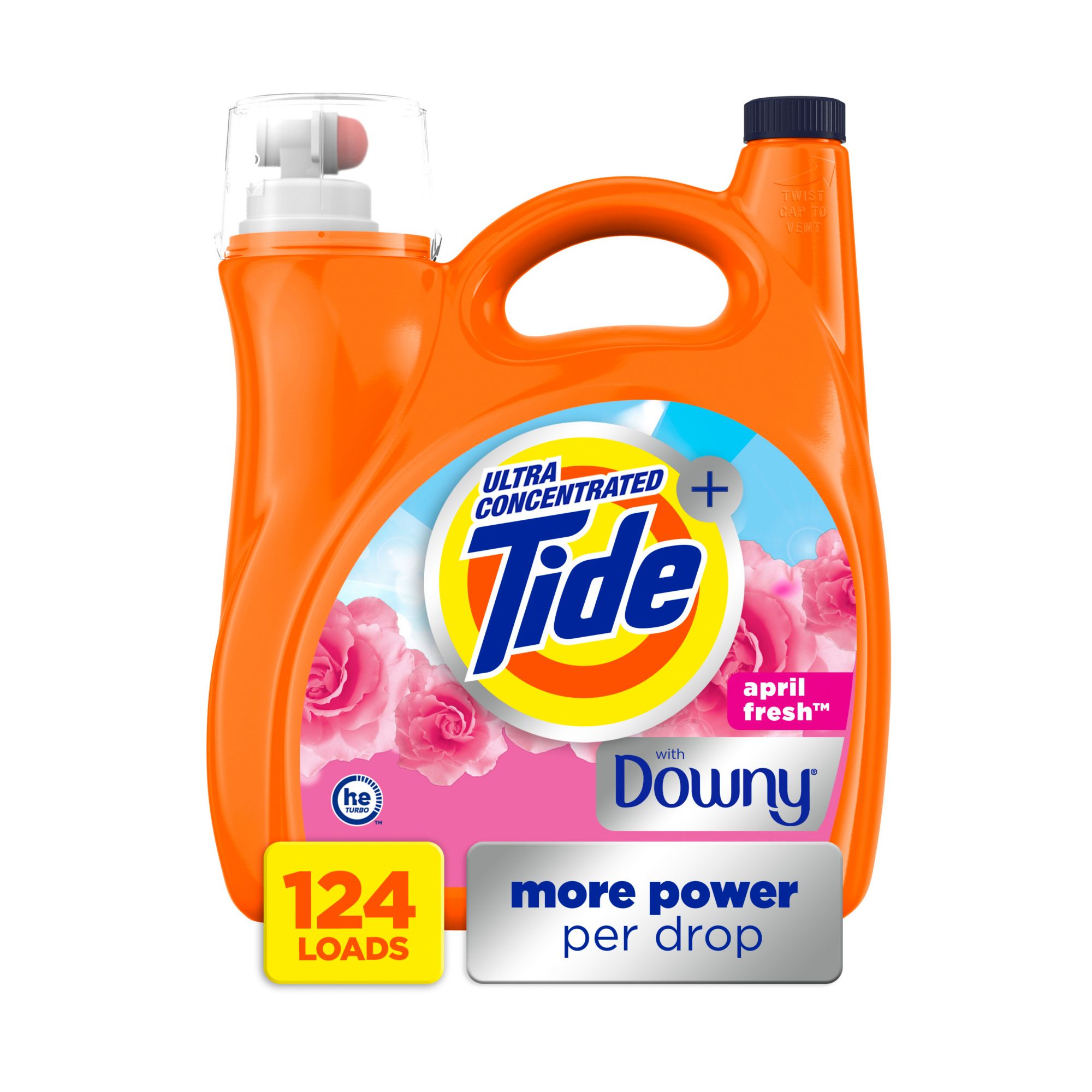 From Tide, the #1 brand used by dermatologists Includes Tide Plus A Touch of Downy Liquid Laundry Detergent, April Fresh Scent, 159 fl. oz., 124 Loads, HE Compatible
