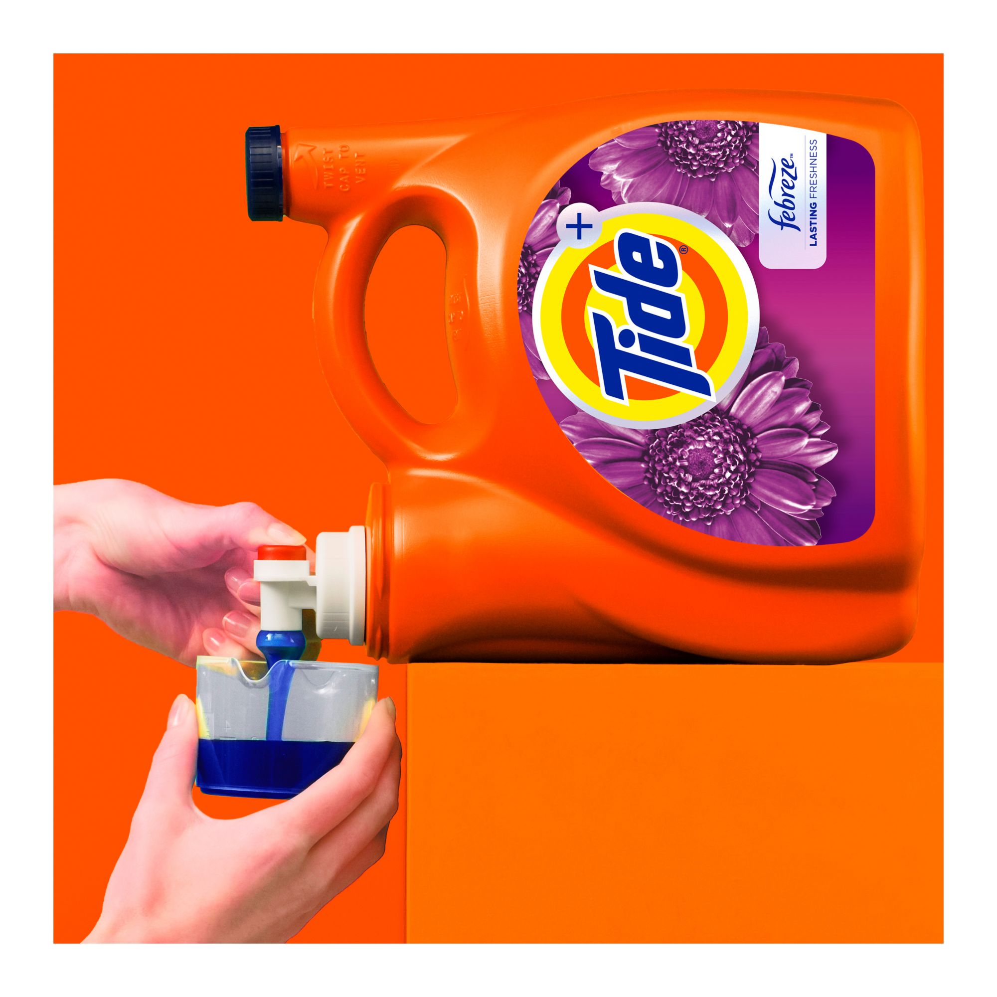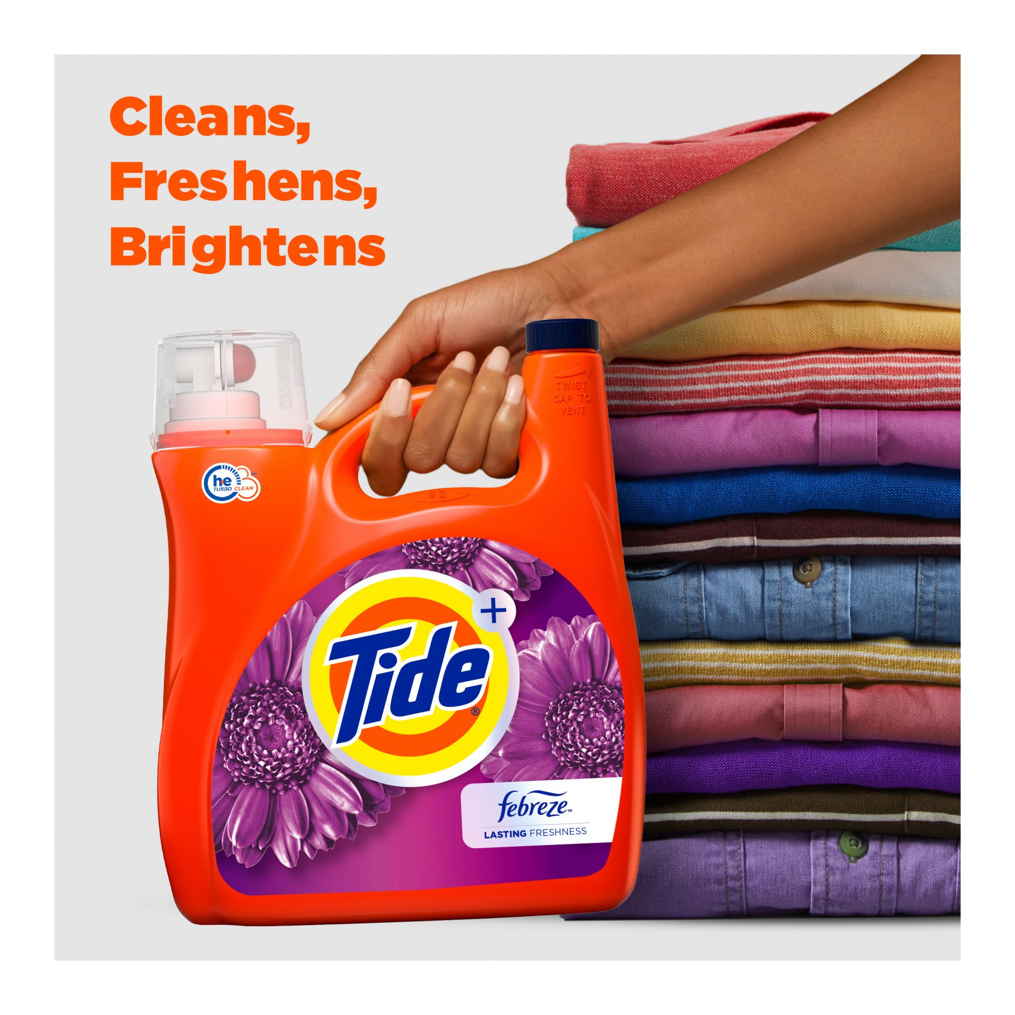 Tide Plus Febreze Freshness Spring & Renewal HE Turbo Clean liquid laundry detergent offers excellent clean and odor removal, plus the Febreze freshness that helps your fabrics stay fresh up to 3x longer*. It effectively targets tough stains and removes even week-old sweat odors. Also, the Tide's formula contains special scent-renewal technology that releases freshness as you move, helping keep your fabrics smelling great all day. Enjoy fresh Spring & Renewal scent and benefit from even more odor-fighting power.