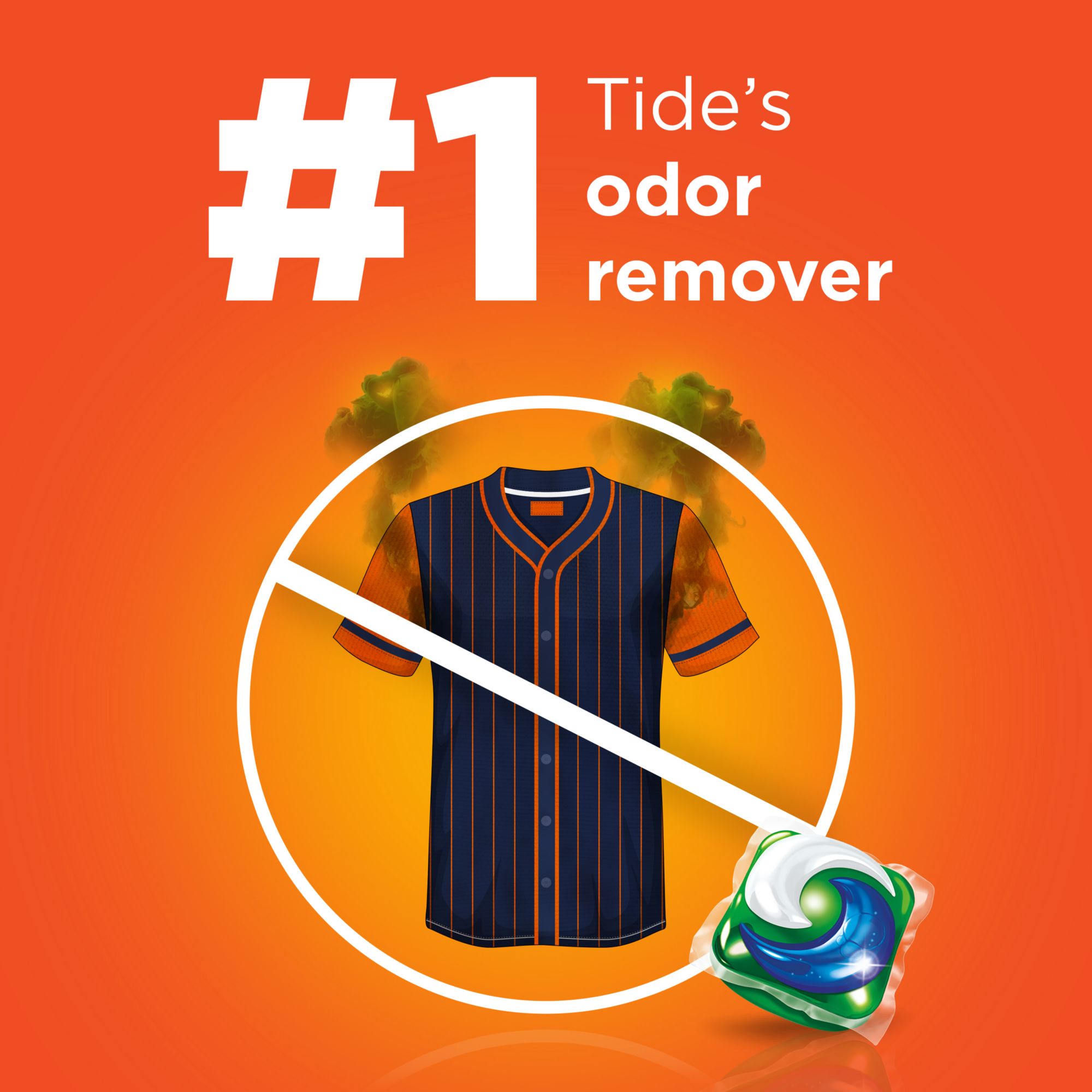 Tide’s #1 odor remover Reformulated to remove even week-old sweat odors Provides freshness that lasts 3x longer (vs. Tide Original) 10X cleaning power (stain removal of one Tide PODS in quick cycle vs. 10 doses of the leading bargain liquid detergent, base variant, in normal wash cycle) Dissolves completely in any water conditions Works in all washing machines Keep out of reach of children Add pacs to drum before clothes