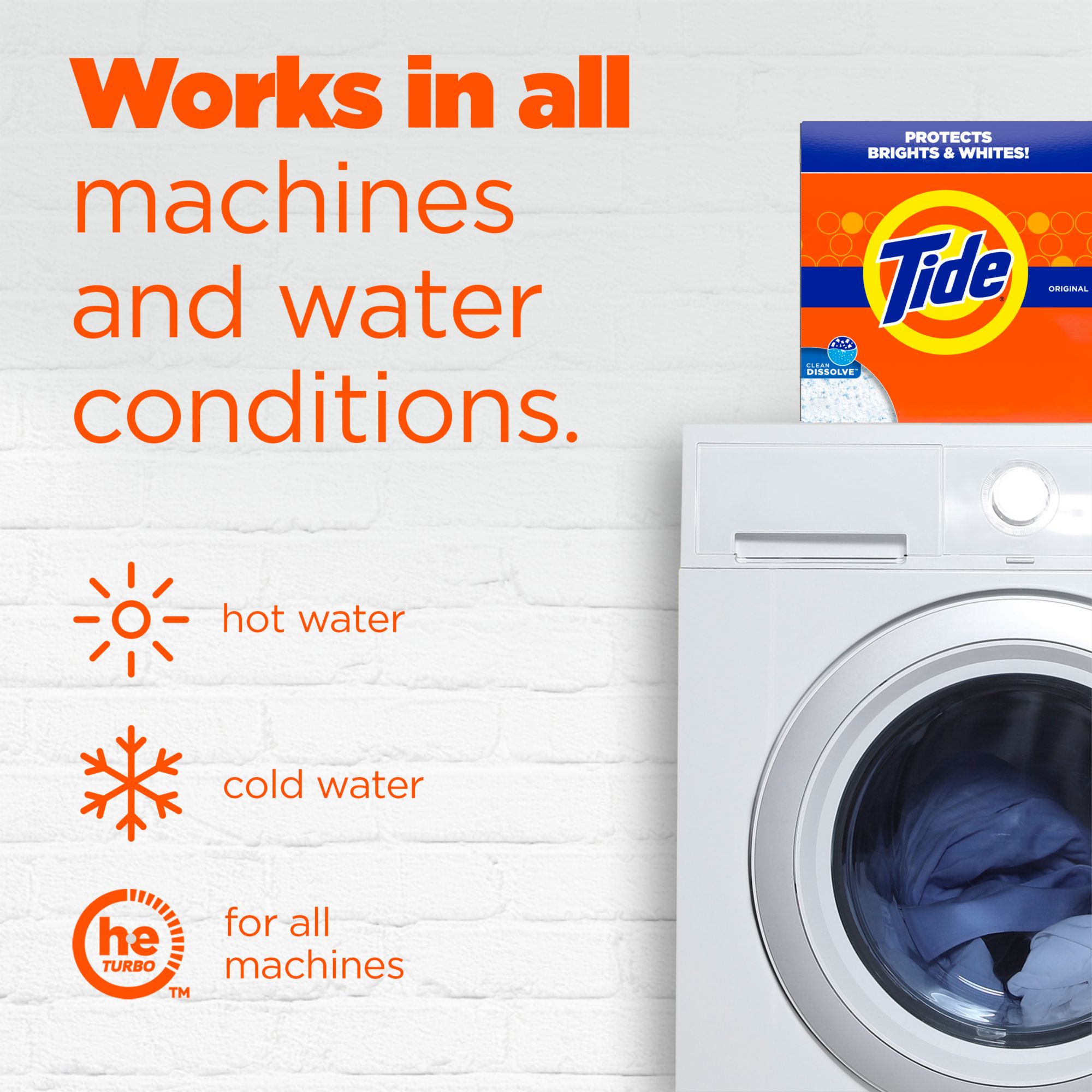 Tide Powder Detergent is engineered to be compatible with both regular and high-efficiency machines, providing you with versatility and convenience. It's as simple as adding the recommended amount of Tide Powder Detergent to the drum, tossing in your clothes, and initiating the wash cycle. Sit back, relax, and let Tide do the hard work for you. With Tide, you can trust that your laundry is in safe hands. For generations, Tide has been the go-to choice for millions of households, delivering impeccable cleaning results time and time again. Experience the reliable power of Tide Original HE Powder Laundry Detergent and elevate your laundry routine to new heights of cleanliness and freshness.
