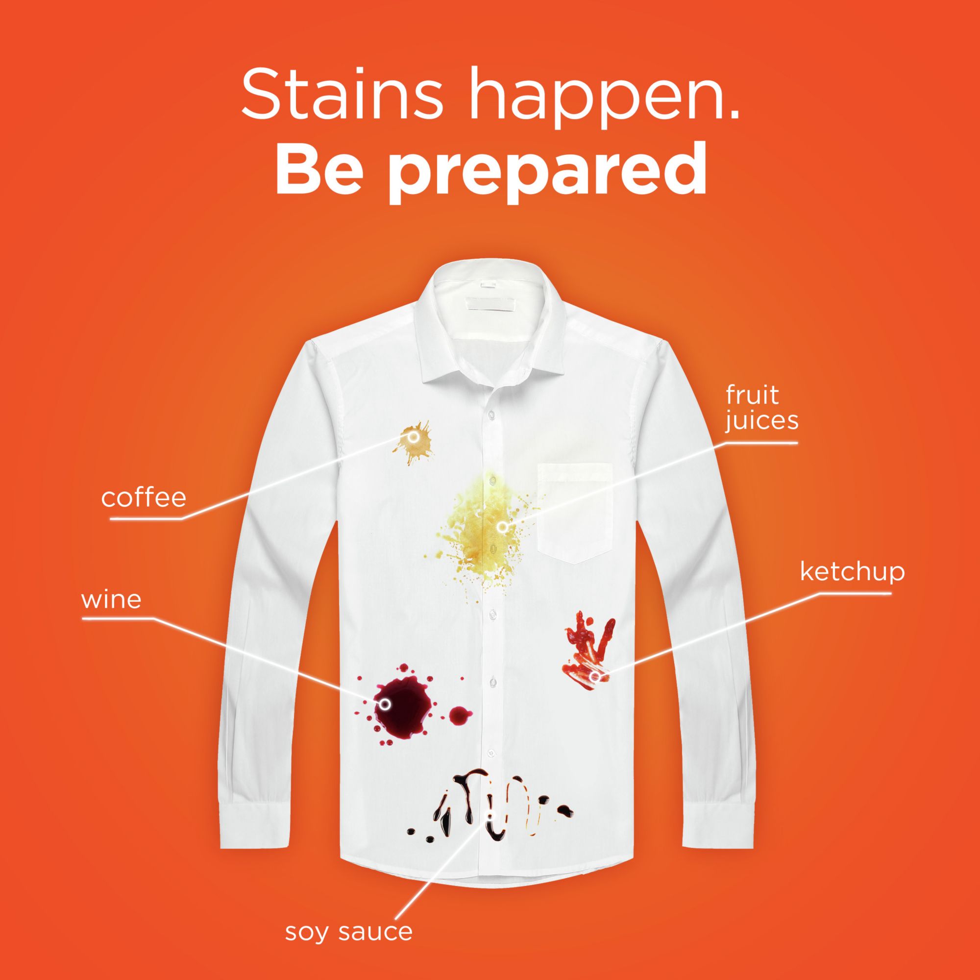 #1 instant stain remover (based on sales) Cloth wipe to help penetrate stains Ultra-Portable, individually wrapped packets Wipe away food and drink stains Works on most fabrics No bleach