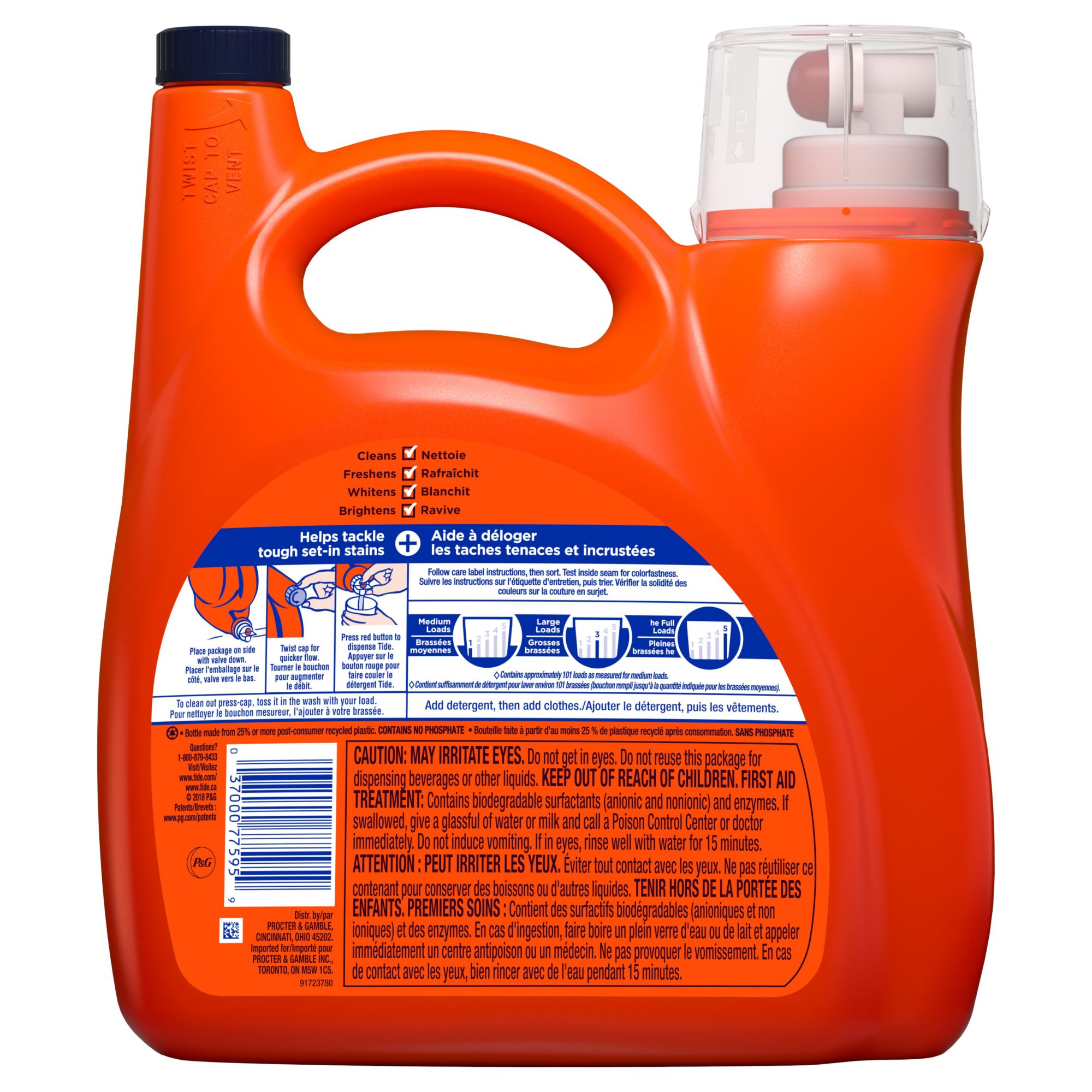 10 times the cleaning power** Offers more of the brilliant whiteness after just one wash* With a more concentrated formula, you get more cleaning agents and less water in every drop* Works in laundry loads for both HE and non-HE washing machines Includes 138 fl. oz. of laundry detergent