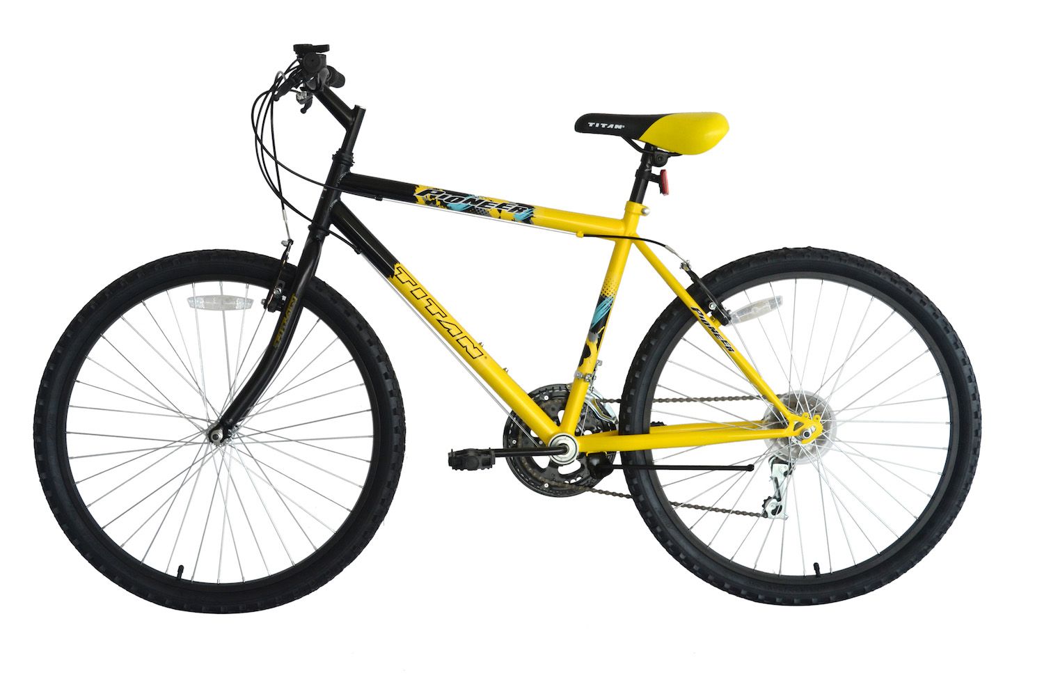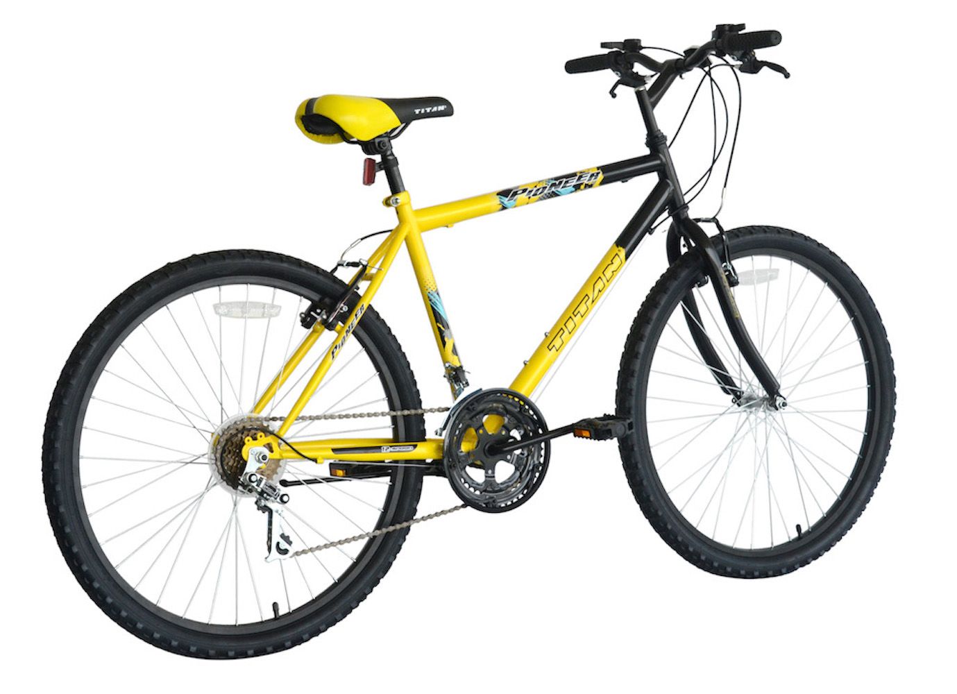Titan Pioneer Hardtail Men's 26" 12-Speed Mountain Bicycle - Yellow